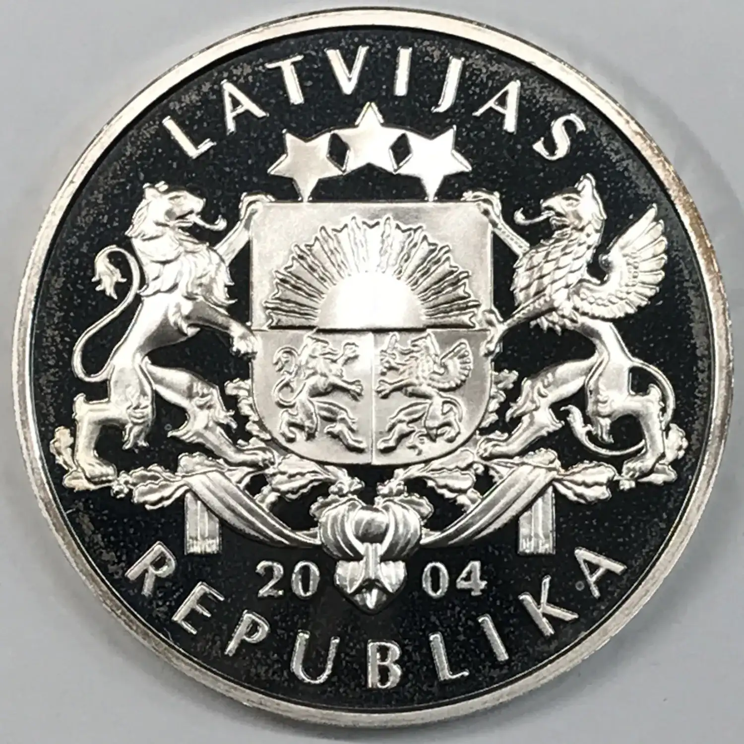 2004 Proof Latvia Silver 1 Lats - Fifa 2006 World Cup Football/Soccer - Germany - KM#63 - 31.47 g, .925 fine, 0.936 troy oz Adjusted Silver Weight (ASW)