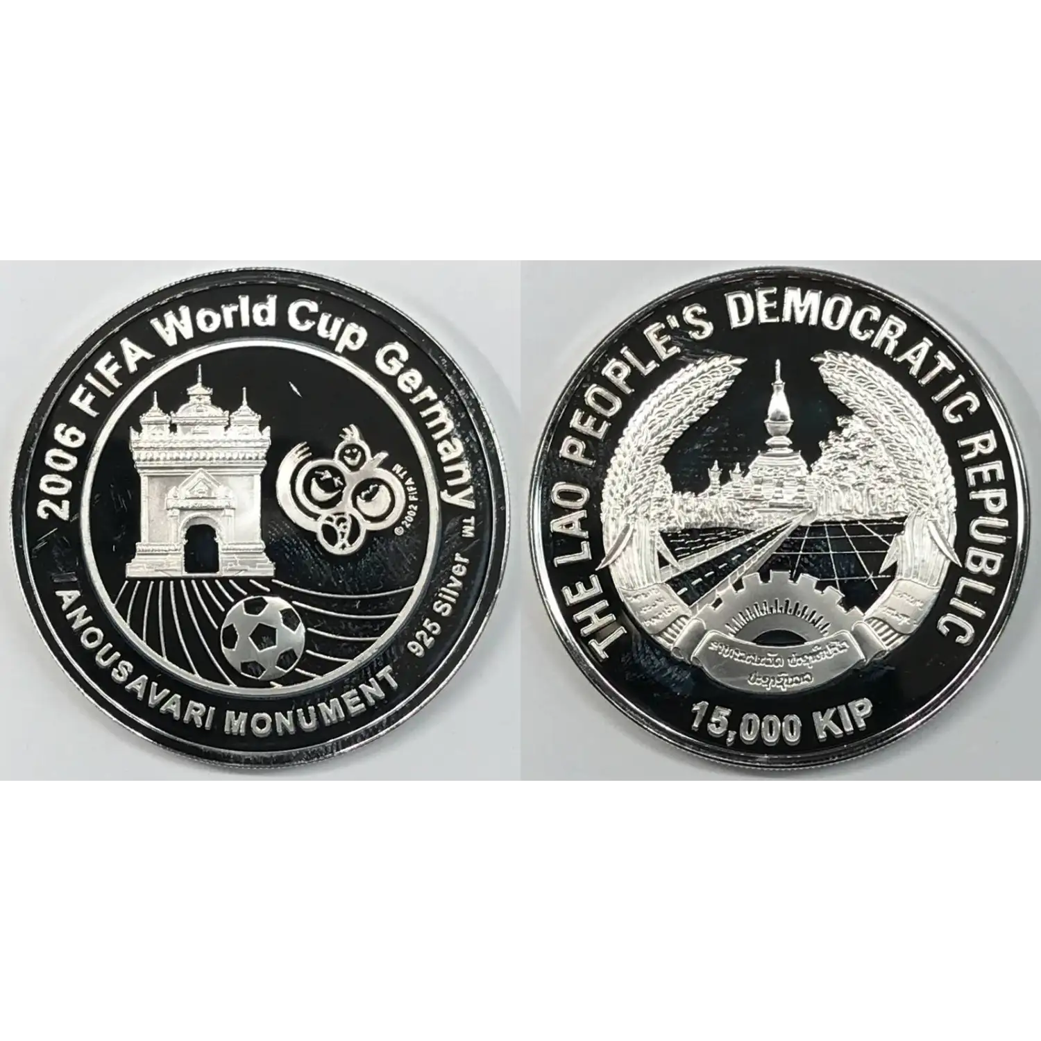 2006 Proof Lao People's Democratic Republic (Laos) Silver 15,000 Kip - Fifa 2006 World Cup Football/Soccer - Germany - 31.1g, .925 fine, 0.925 troy oz Adjusted Silver Weight (ASW)