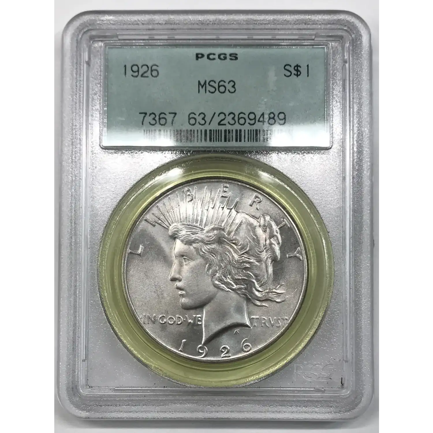 1926 P Peace Silver Dollar PCGS MS-63 - Gen 3.0 Old Green Holder (OGH) - nice attractive coin - some lines on cheek visible at certain angles keep it from getting a higher grade