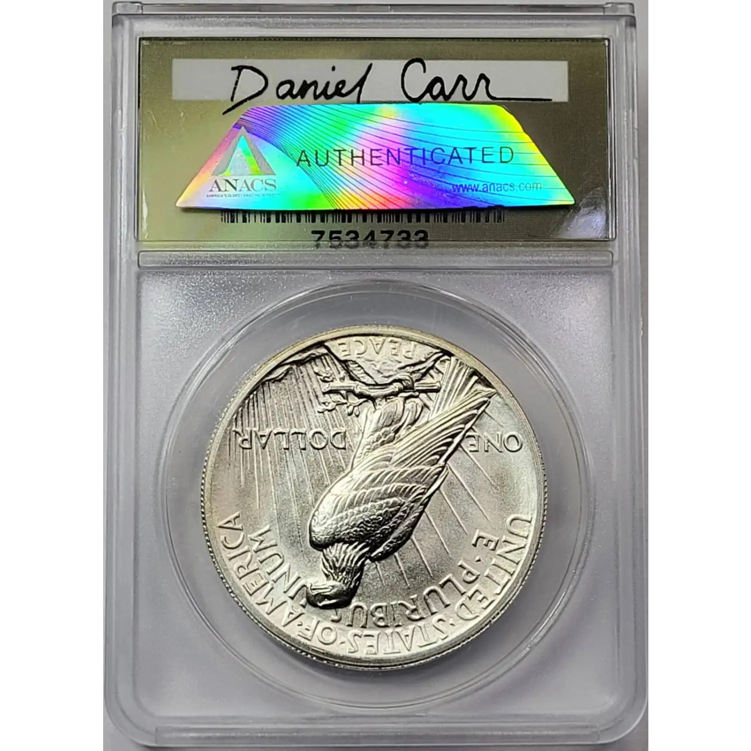 2022 Daniel Carr Medal ANACS MS-69 O/S on USA Broken Sword Peace Dollar