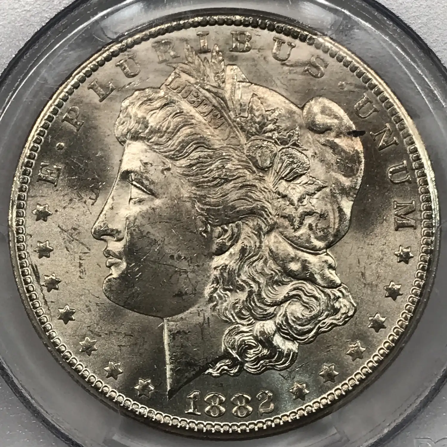 1882 CC Morgan Silver Dollar PCGS MS-63 - minor plastic chipping (lower left corner, front of slab)