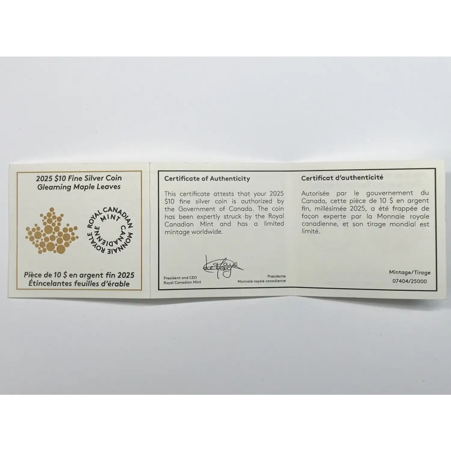 2025 CANADA Silver 10 DOLLARS Gleaming Maple Leaves