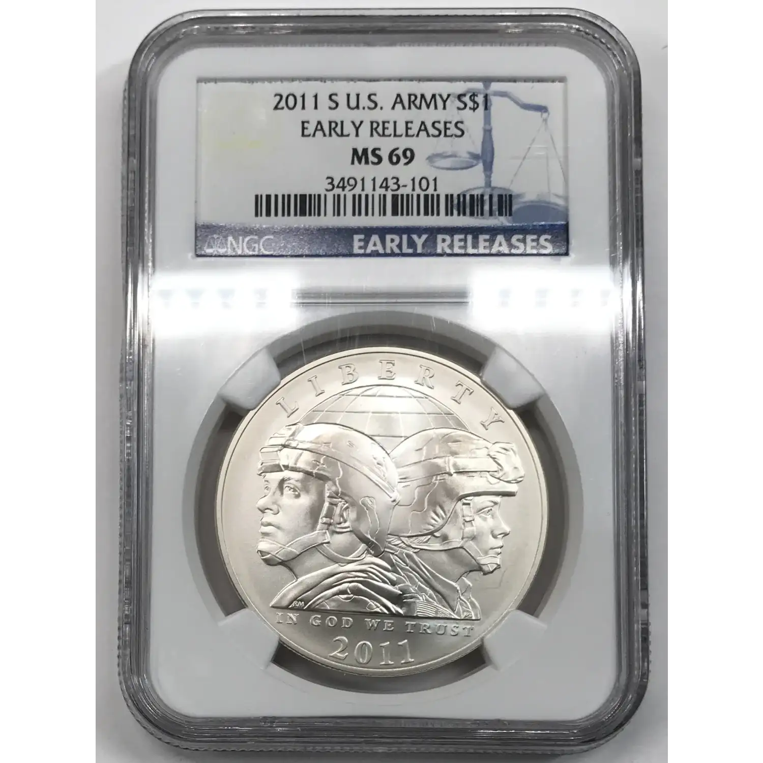 2011-S United States Army Commemorative Silver Dollar NGC MS-69 Early Releases