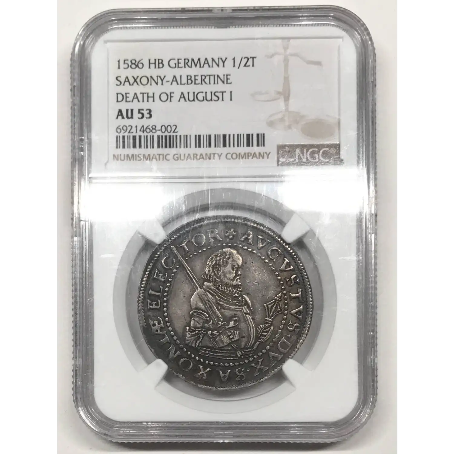 1586-HB German States Silver 1/2 Thaler NGC AU-53 SAXONY-ALBERTINE DEATH OF AUGUST I