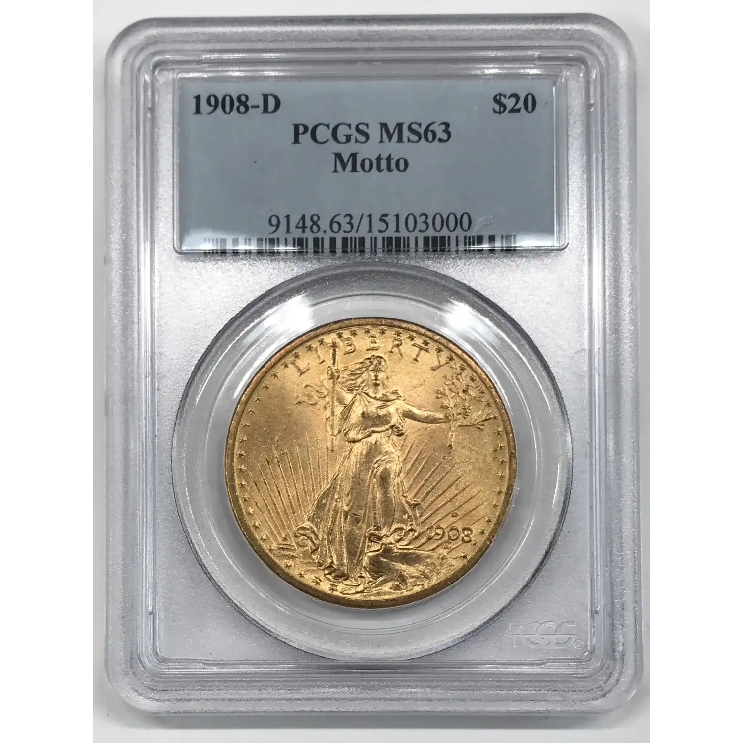 1908-D Saint Gaudens $20 Gold Double Eagle PCGS MS-63 Motto