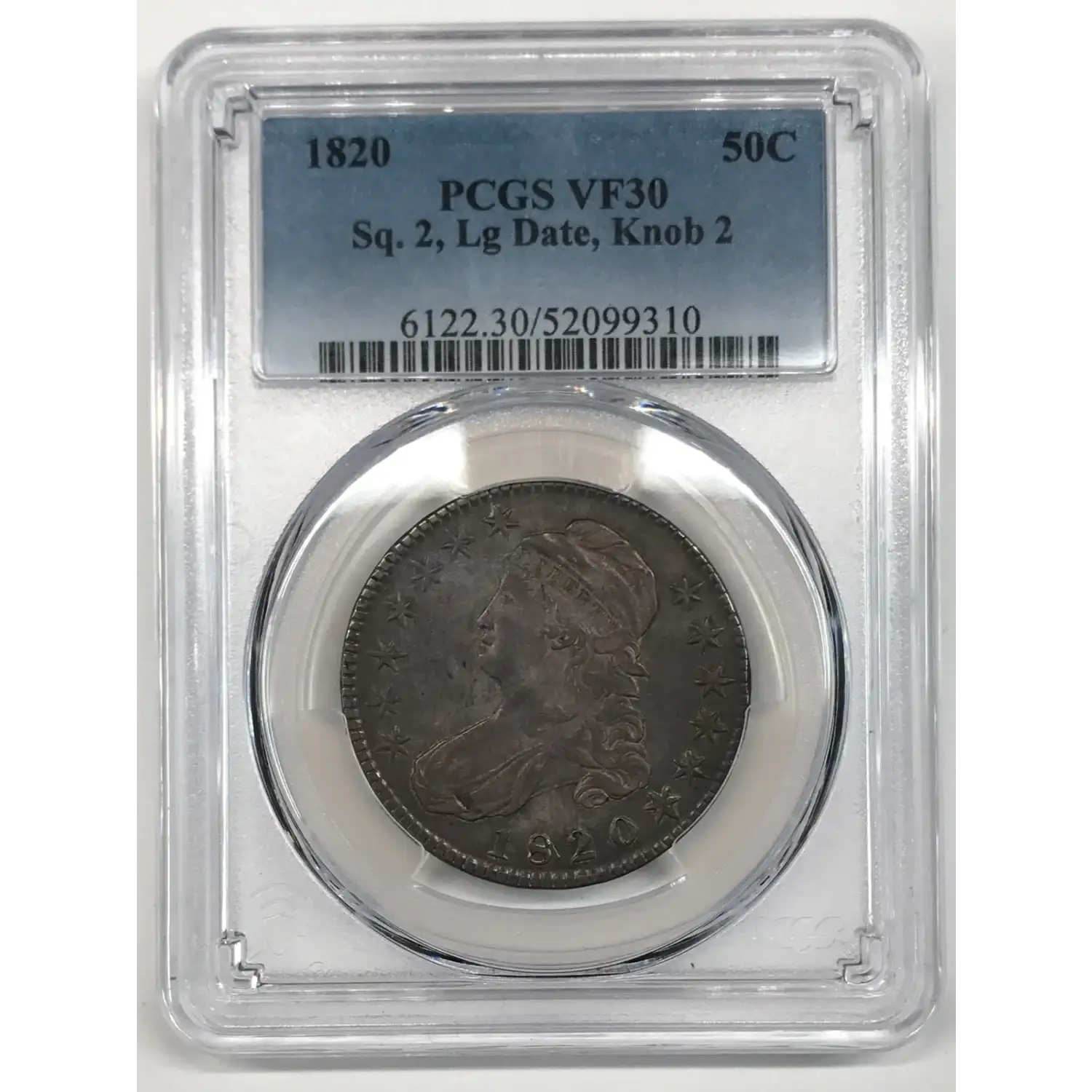 1820 Square 2, Large Date, Knob 2 Capped Bust Half Dollar PCGS VF-30
