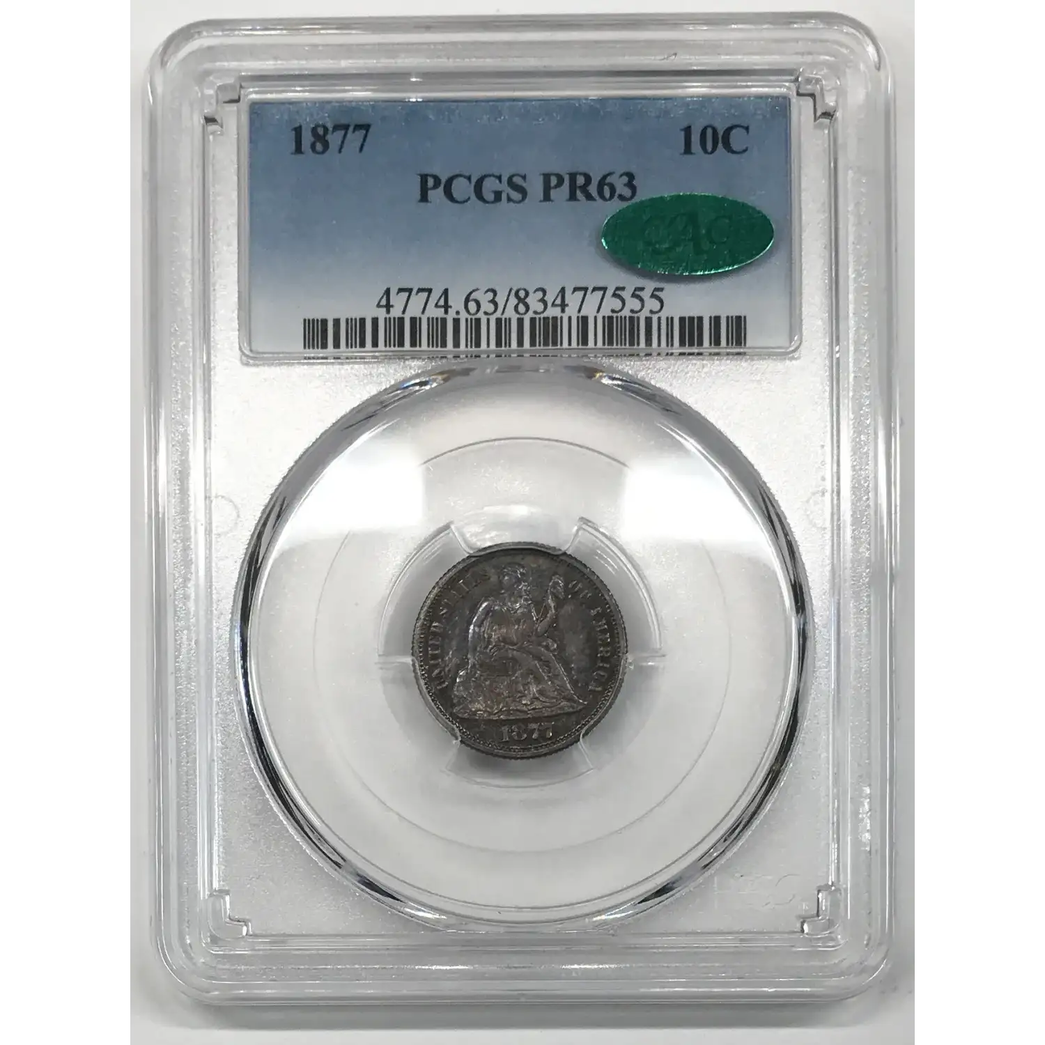 1877 Seated Liberty Dime PCGS PR-63 CAC