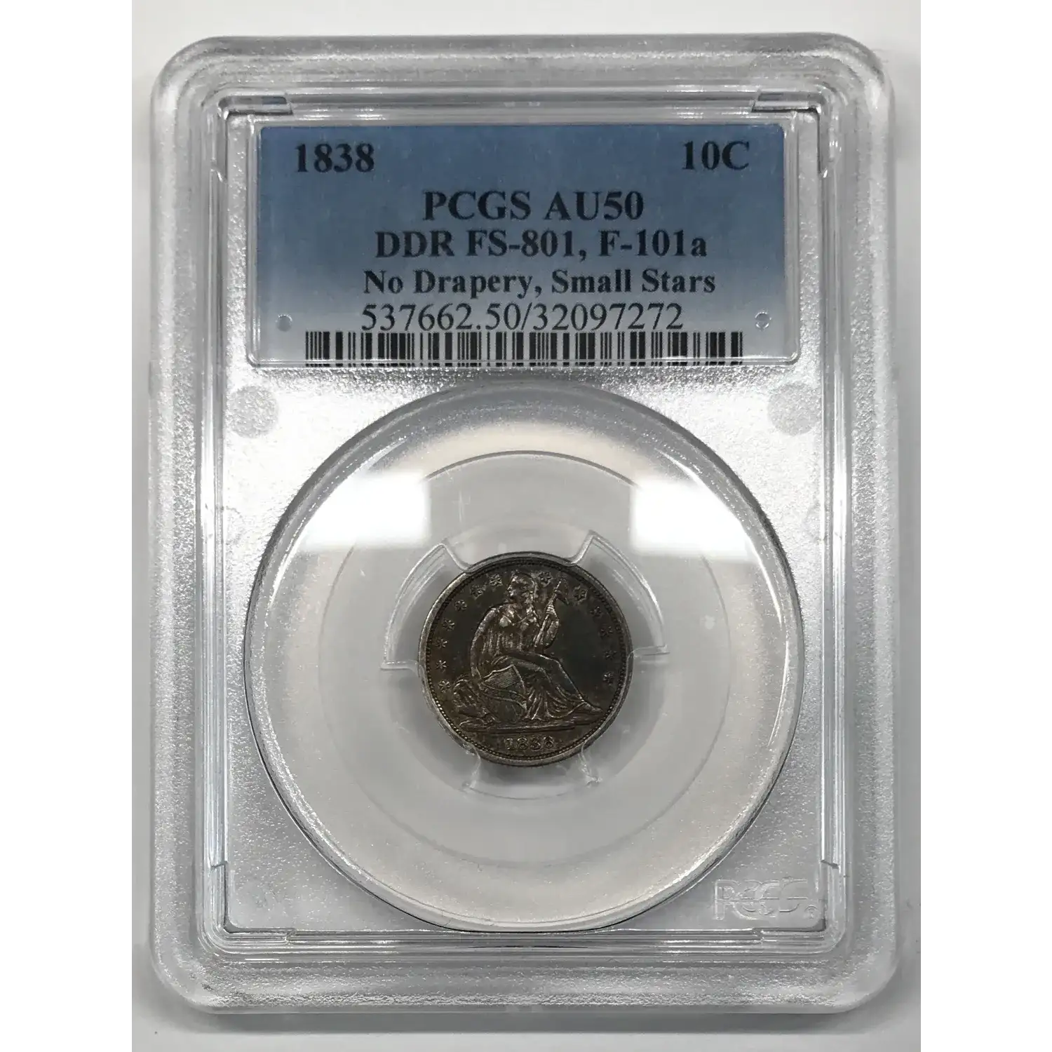 1838 Seated Liberty Dime PCGS AU-50 Small Stars F-101a DDR FS-801