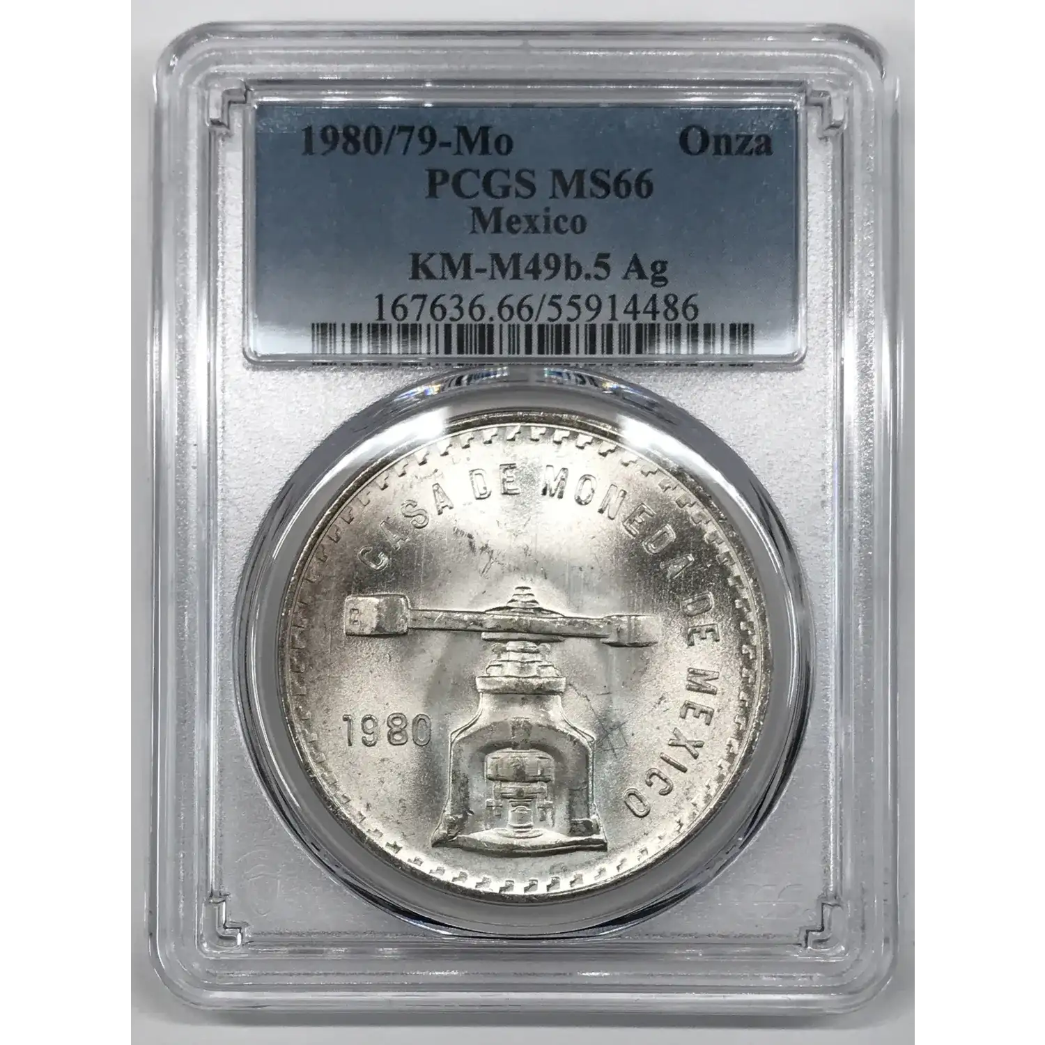 1980/79-Mo MEXICO Silver ONZA PCGS MS-66 KM-M49b.5