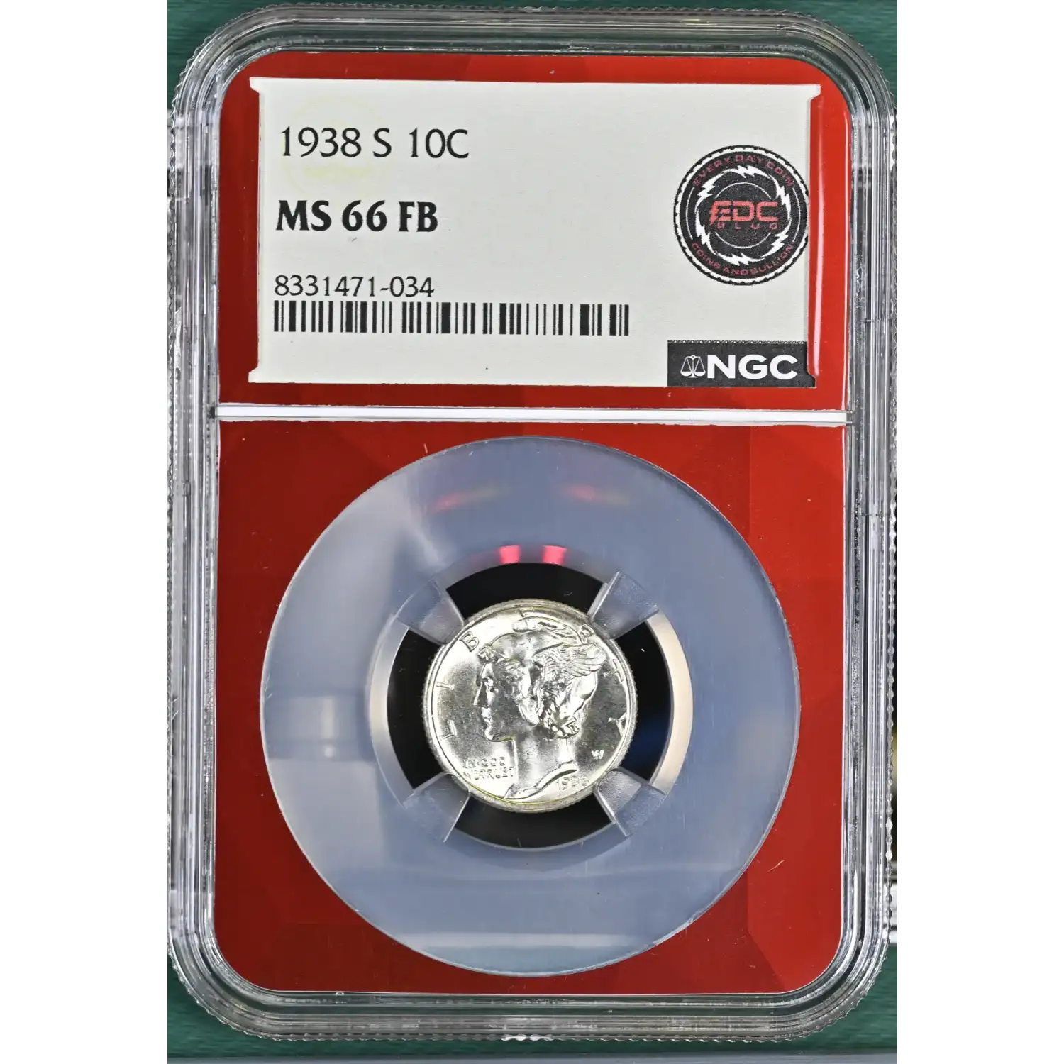 1938 S Mercury Dime NGC MS-66 FB - EDC Plug Label