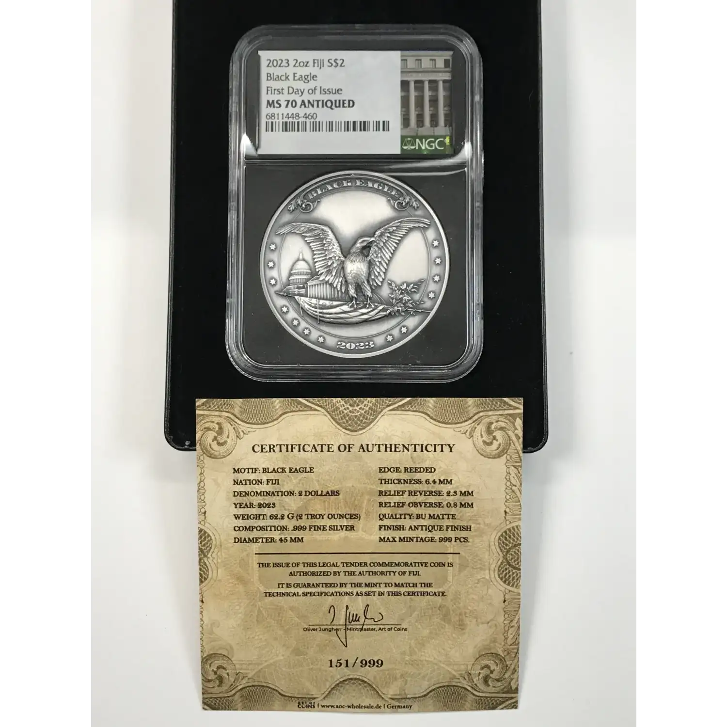 2023 2 oz Silver NGC MS-70 Black Eagle UHR Antique Finish Fiji $2