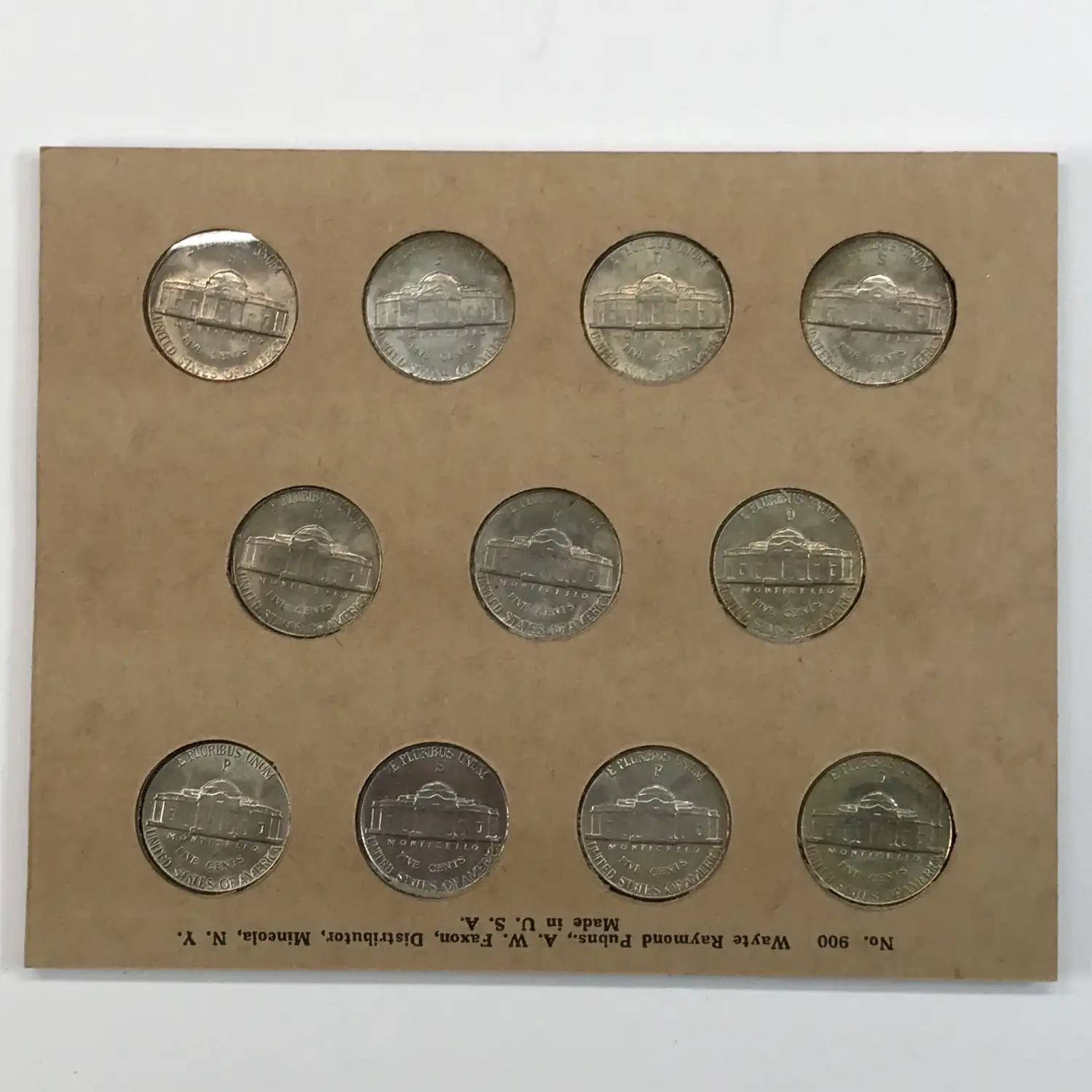 1942-1945 PDS World War II Silver Jefferson Nickel 11-Coin Set - BU/Uncirculated - some toning - Wayte Raymond Holder No 900 - 1944-S appears to have planchet flaw on reverse