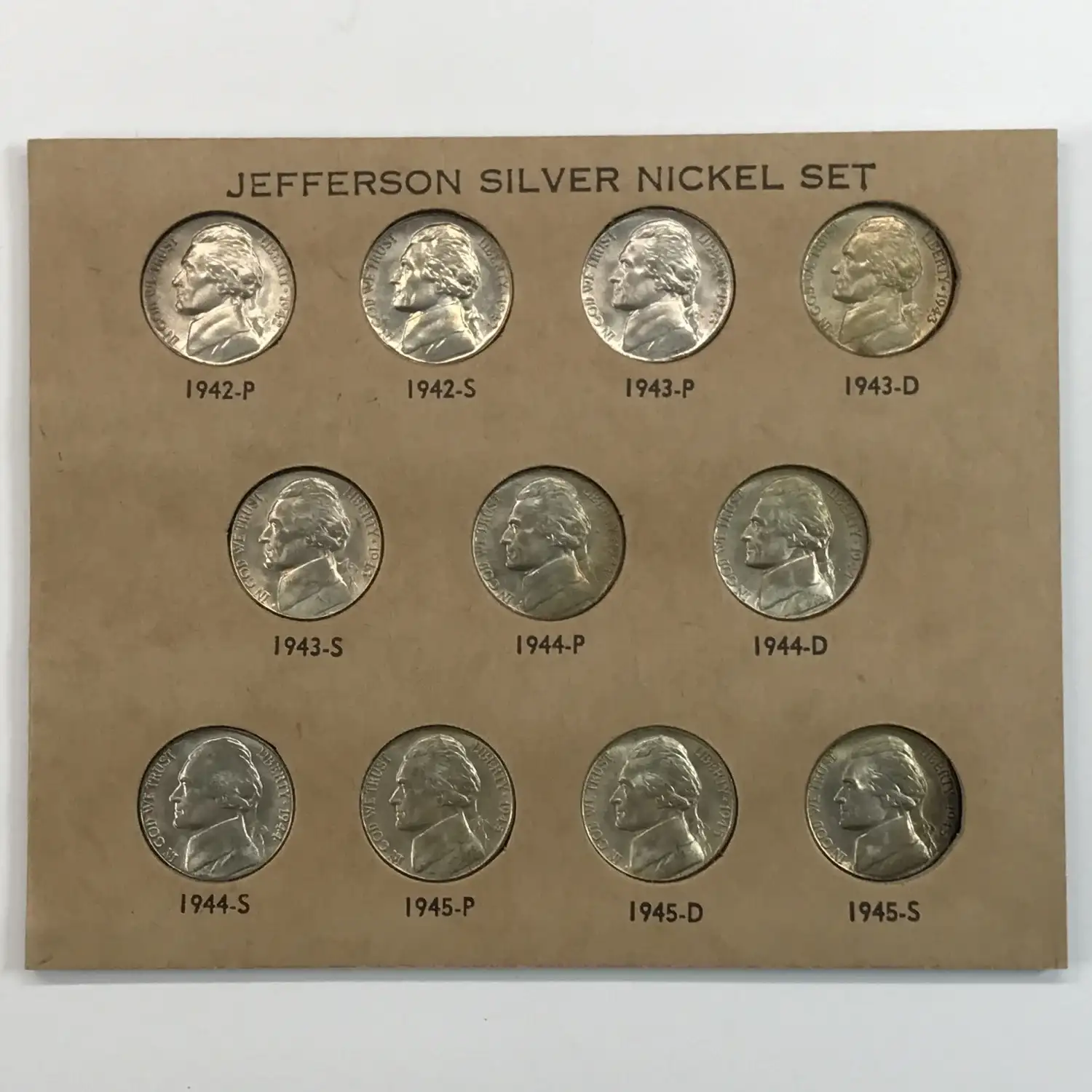 1942-1945-PDS Jefferson Nickel Uncirculated Silver World War II 11-Coin Set