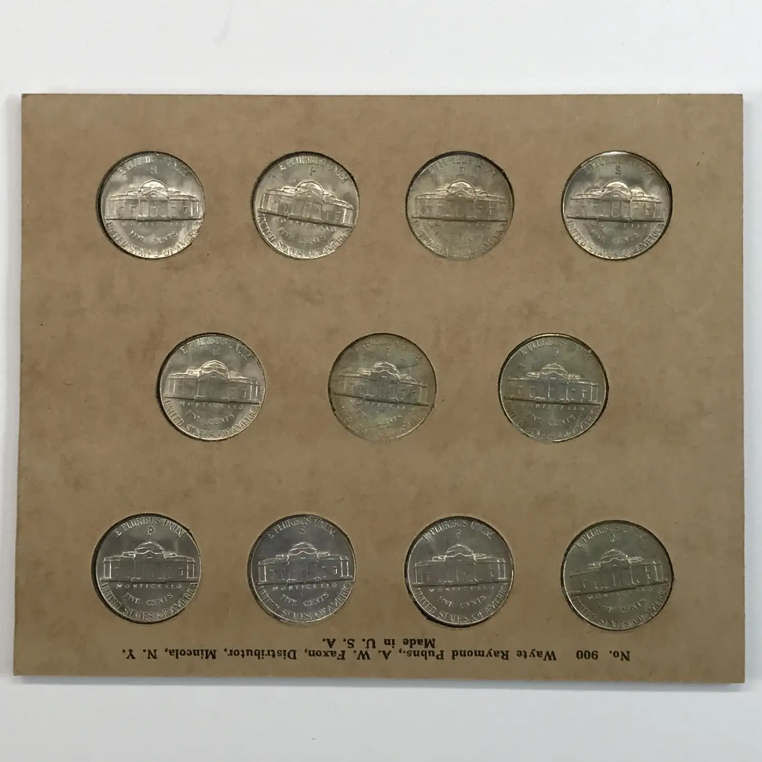 1942-1945 PDS World War II Silver Jefferson Nickel 11-Coin Set - BU/Uncirculated - some toning - Wayte Raymond Holder No 900