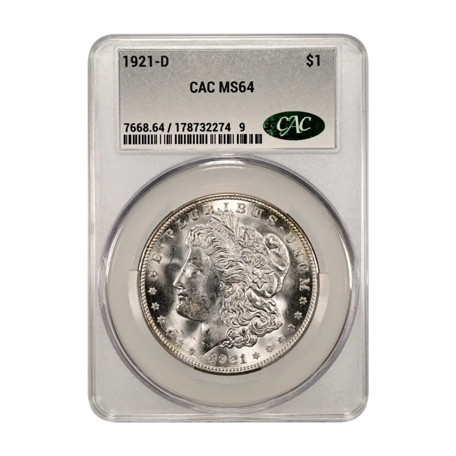 1921-D Morgan Silver Dollar CAC Grading (CACG) MS 64