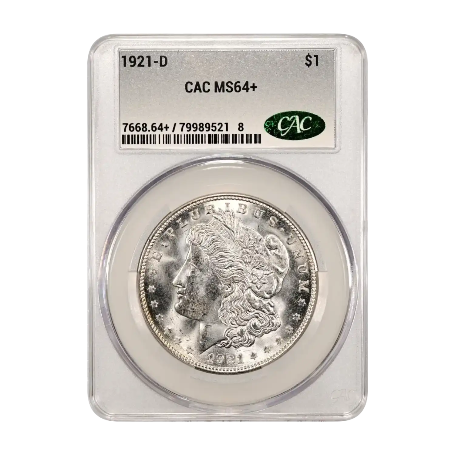 1921-D Morgan Silver Dollar CAC Grading (CACG) MS 64+ Plus