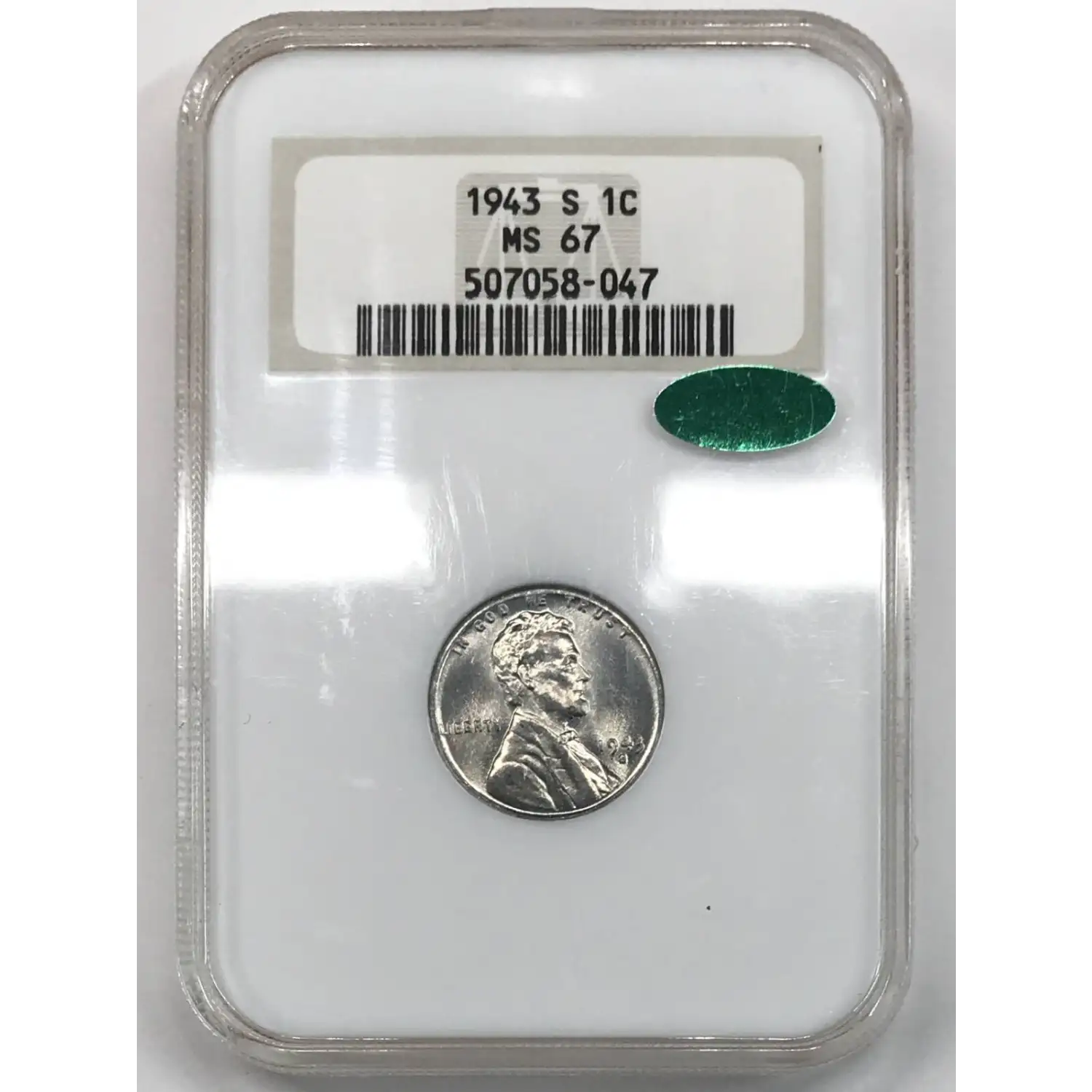 1943 S Lincoln Wheat Cent NGC MS-67 CAC - Old Fatty Holder - some hologram peeling
