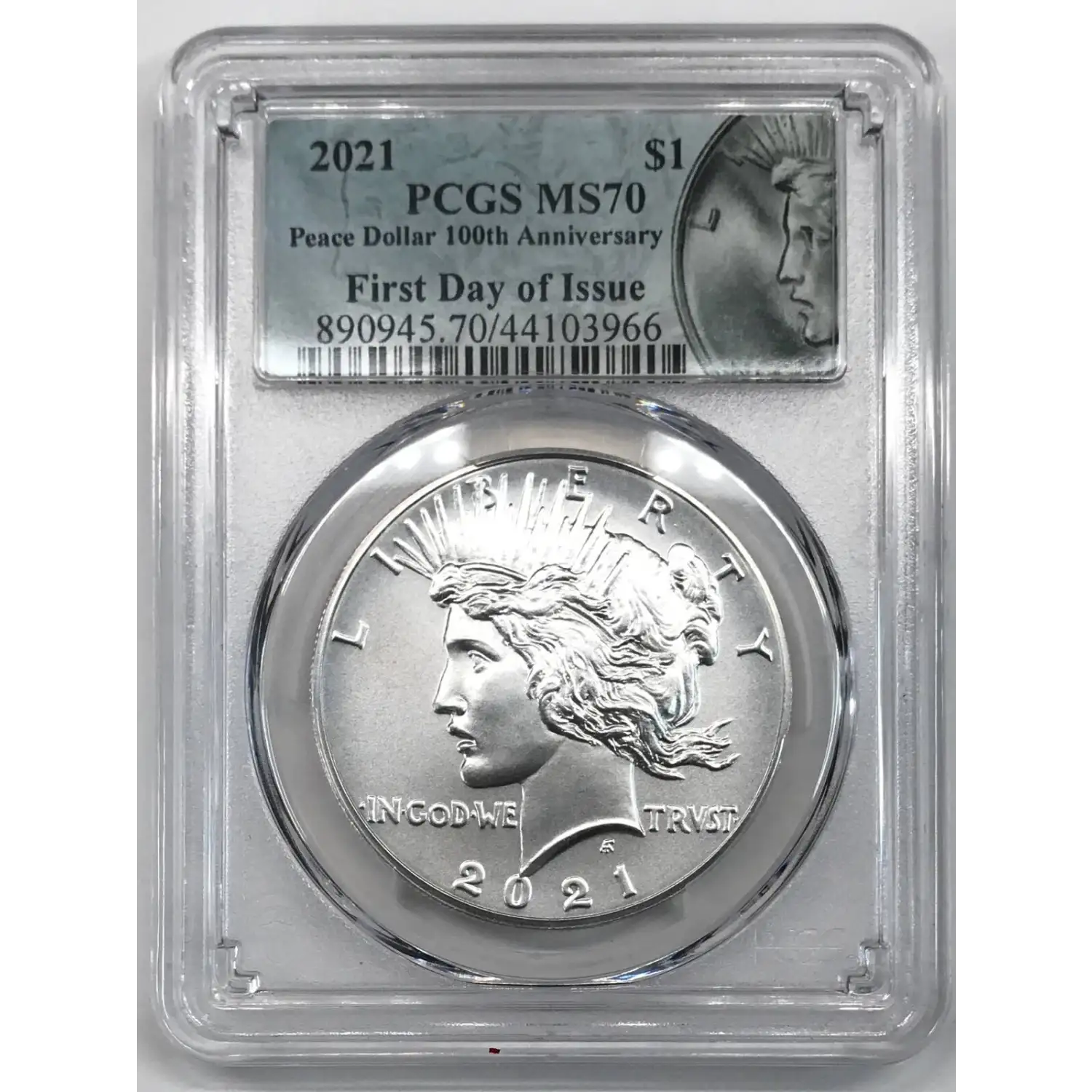 2021 Modern Peace Silver Dollar PCGS MS-70 100th Anniversary First Day of Issue