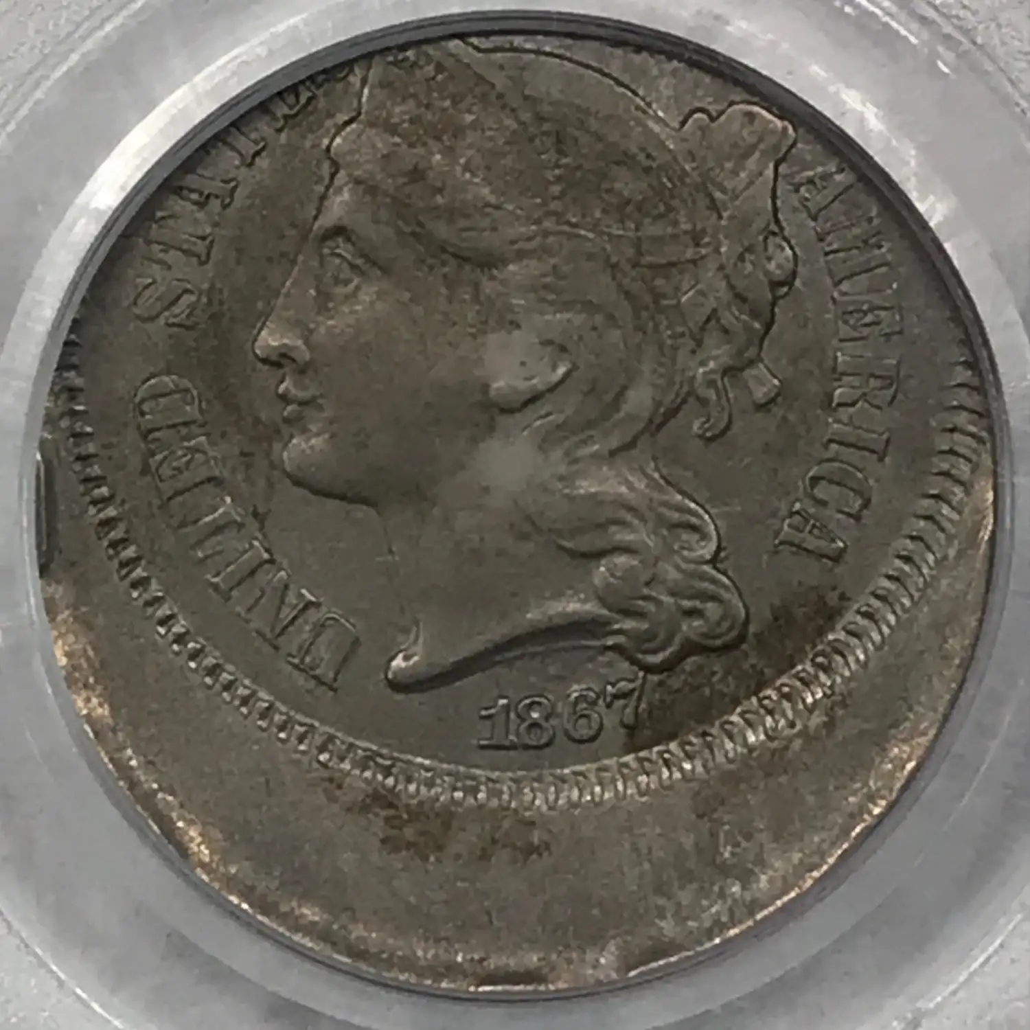 1867 Three Cent Nickel (3CN) Piece PCGS AU58