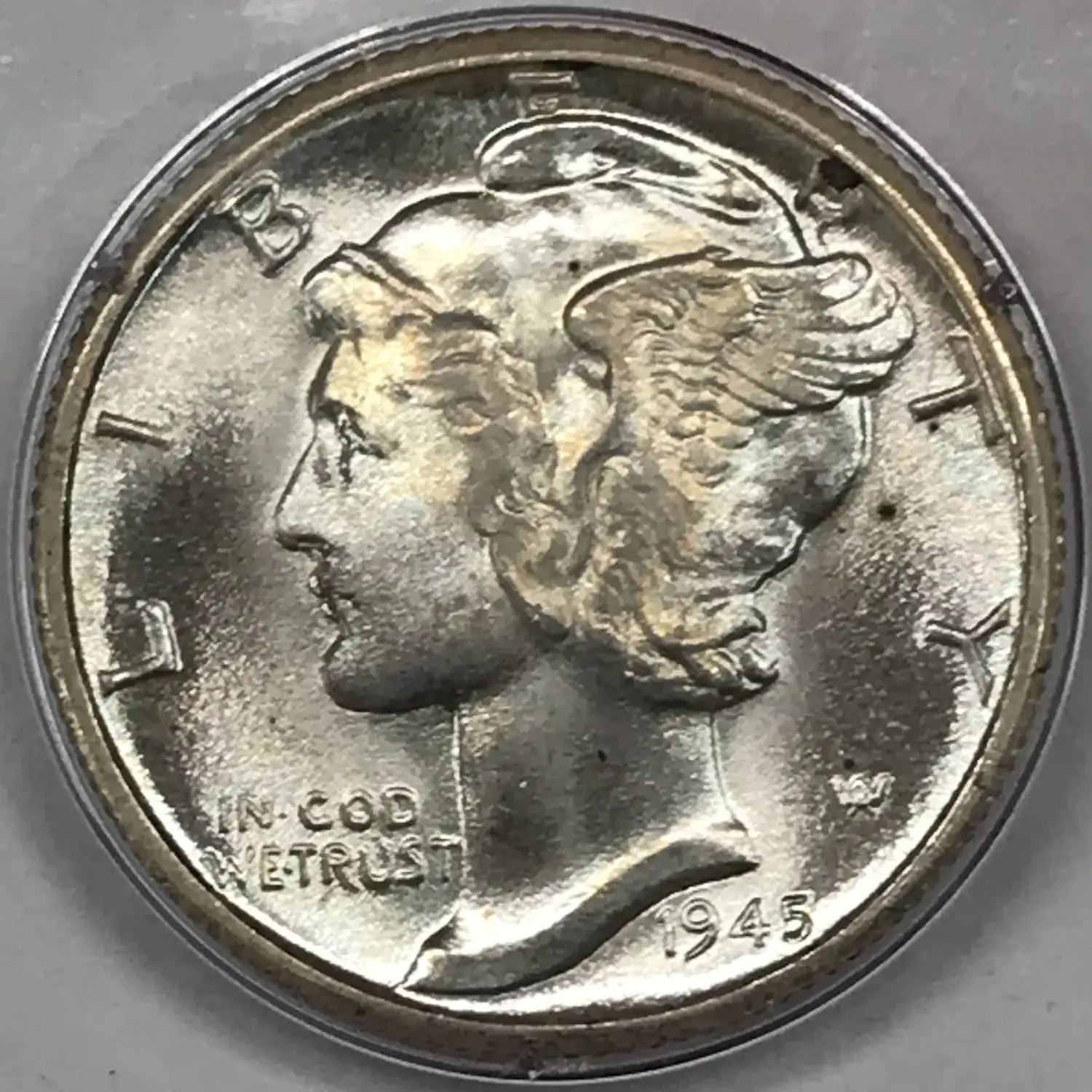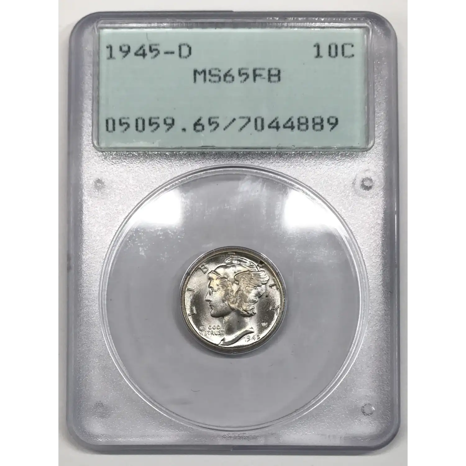 1945 D Mercury Dime PCGS MS-65 FB - "Rattler" Old Green Holder (OGH) - nice tone