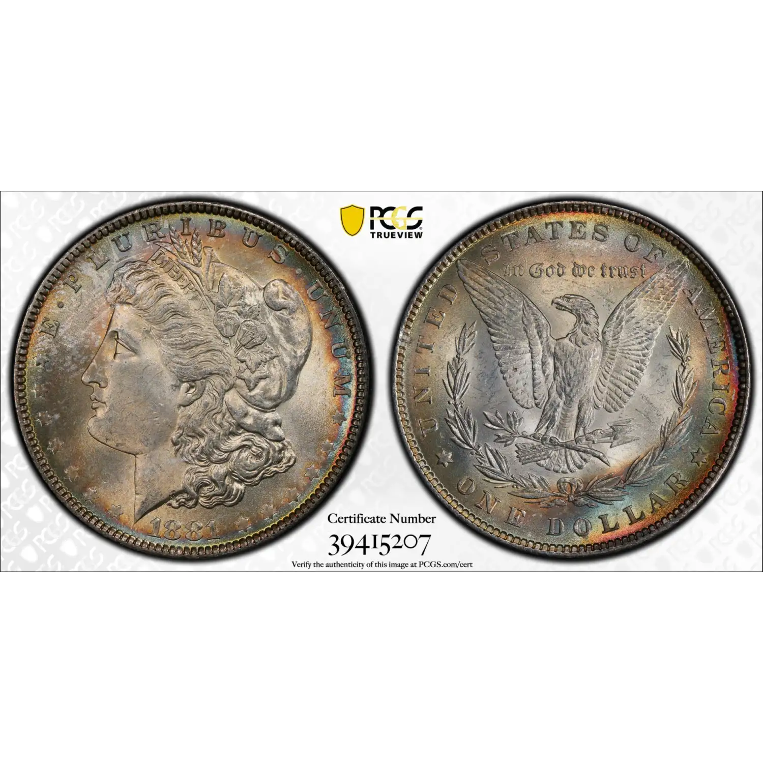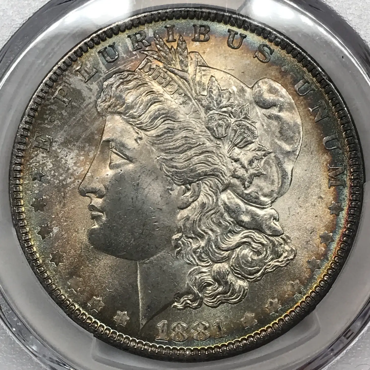 1881 P Morgan Silver Dollar PCGS MS-66 *Rainbow Toning*