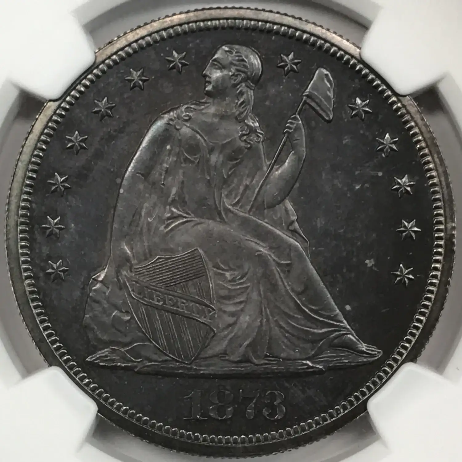1873 Proof Seated Liberty Silver Dollar NGC PF-65 - Blue/Purple Toning