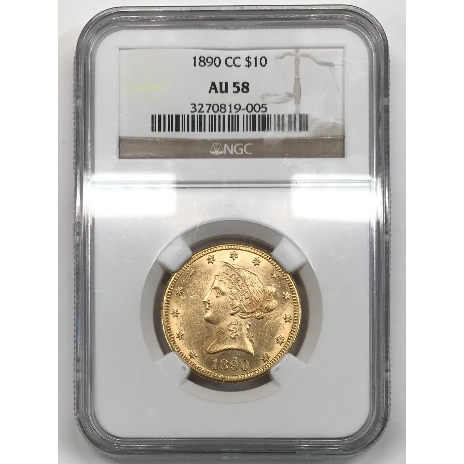 1890 CC $10 Gold Liberty Head Eagle NGC AU-58