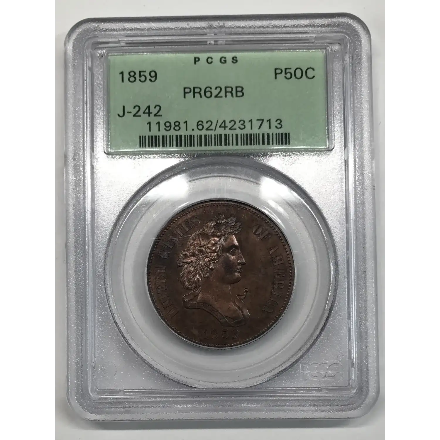 1859 P Copper Half Dollar / 50 Cents Pattern Coin PCGS PR-62 RB - Judd J-242, P-298 - Gen 3.1 Old Green Holder (OGH)