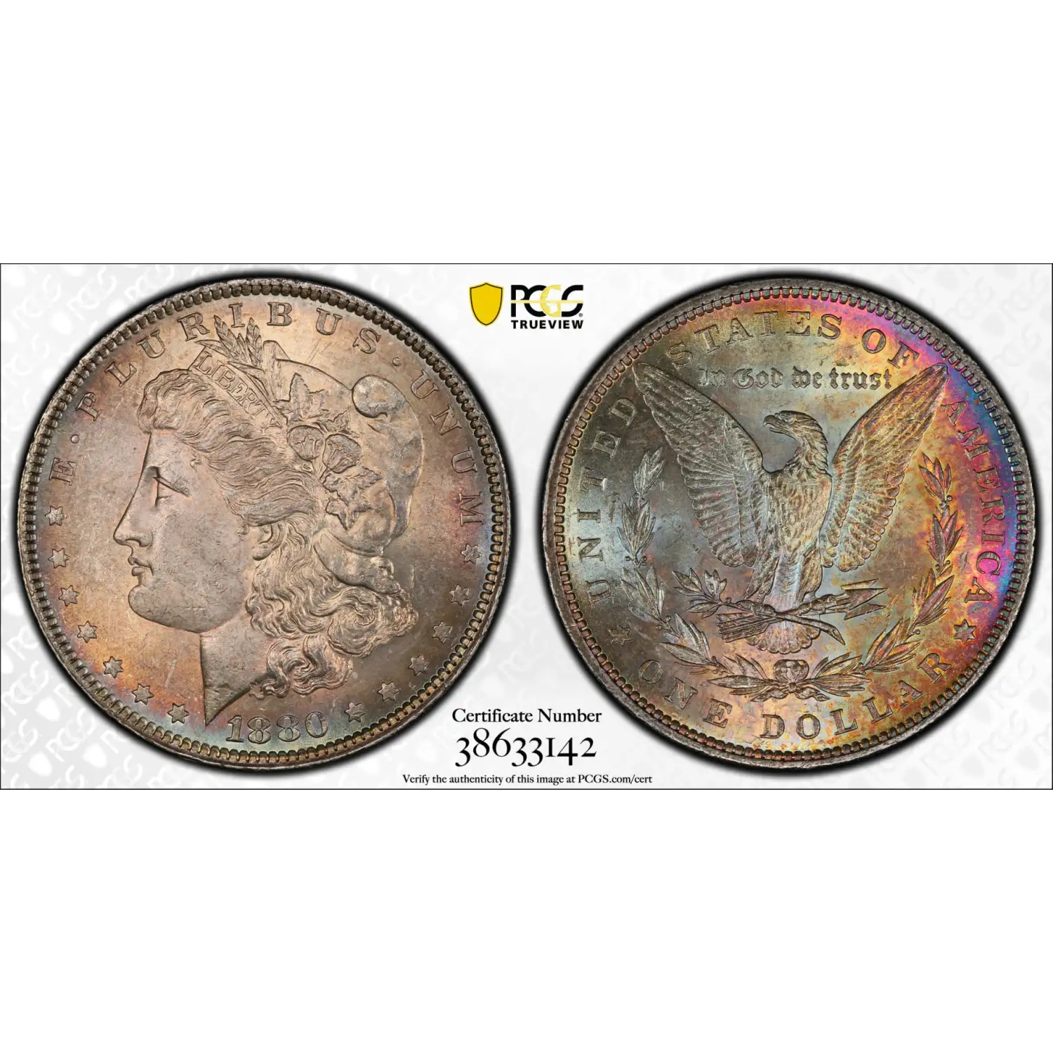 1880 P Morgan Silver Dollar PCGS MS-64 - *Rainbow Toning* - Hit List 40 VAM-25 Die Chip Chin, Wing