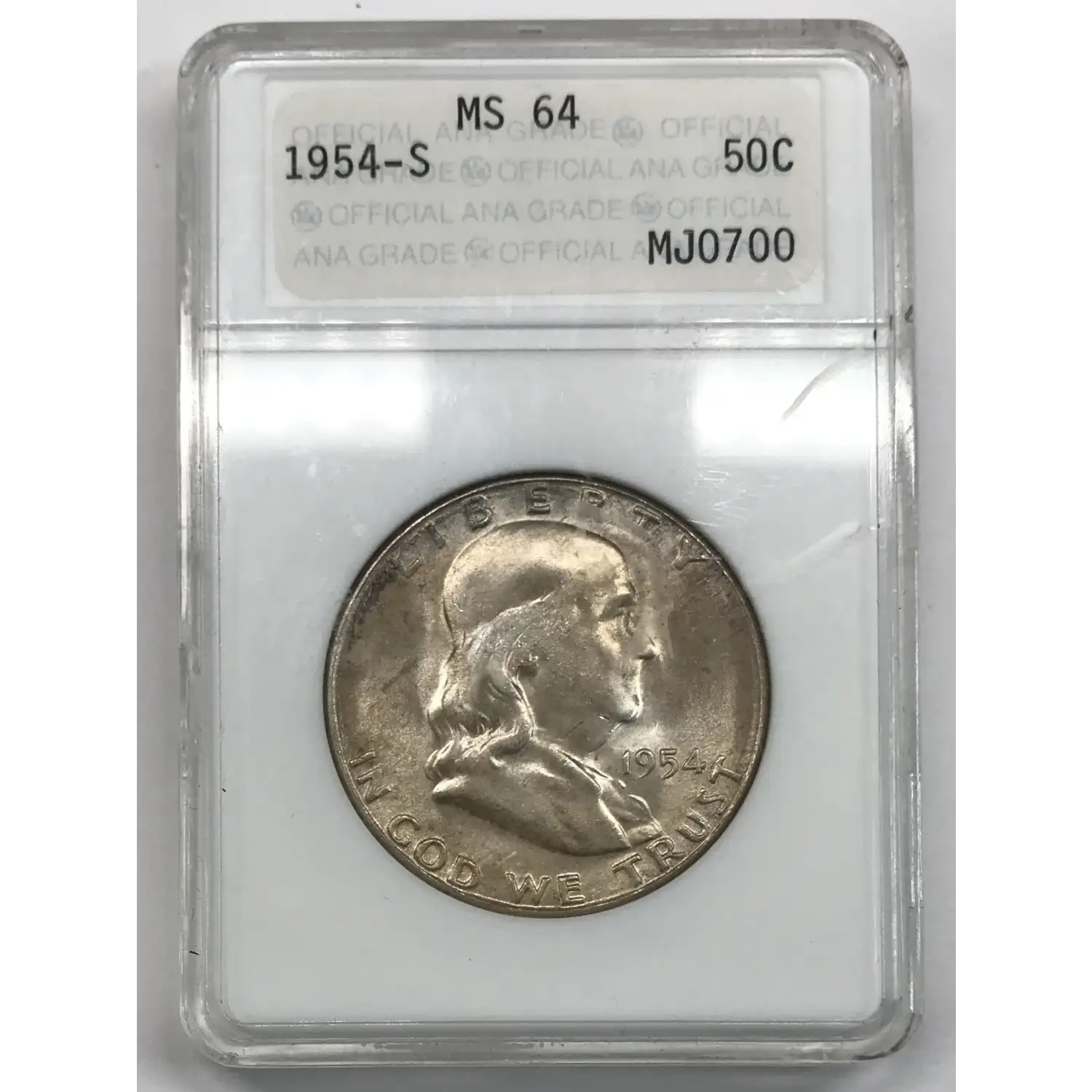 1954 S Franklin Half Dollar ANACS MS-64 - ANA old white soapbox holder