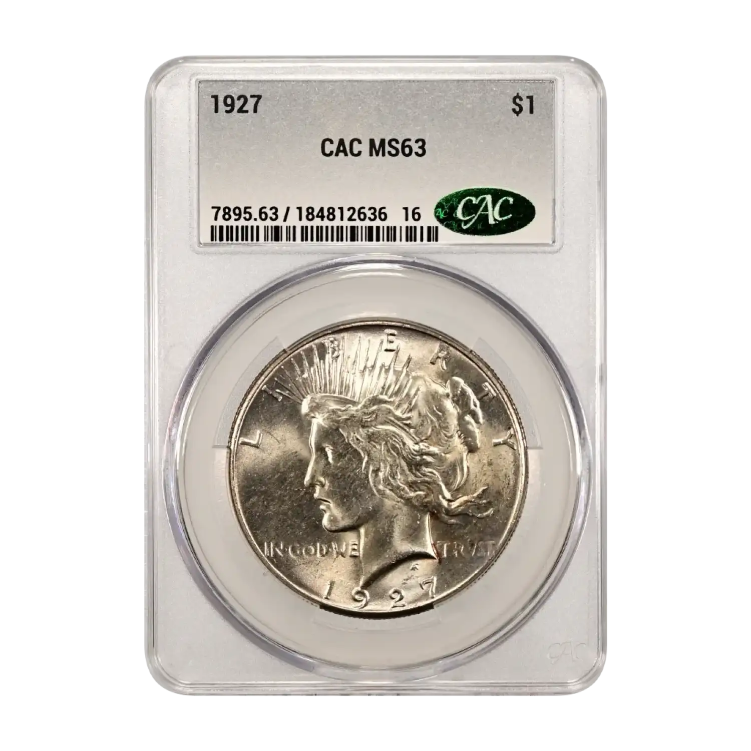 1927 P Peace Silver Dollar CAC Grading (CACG) MS 63