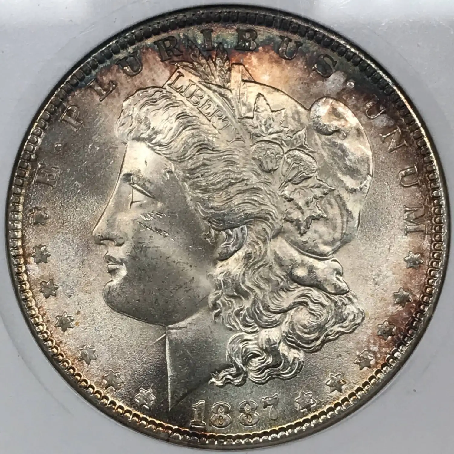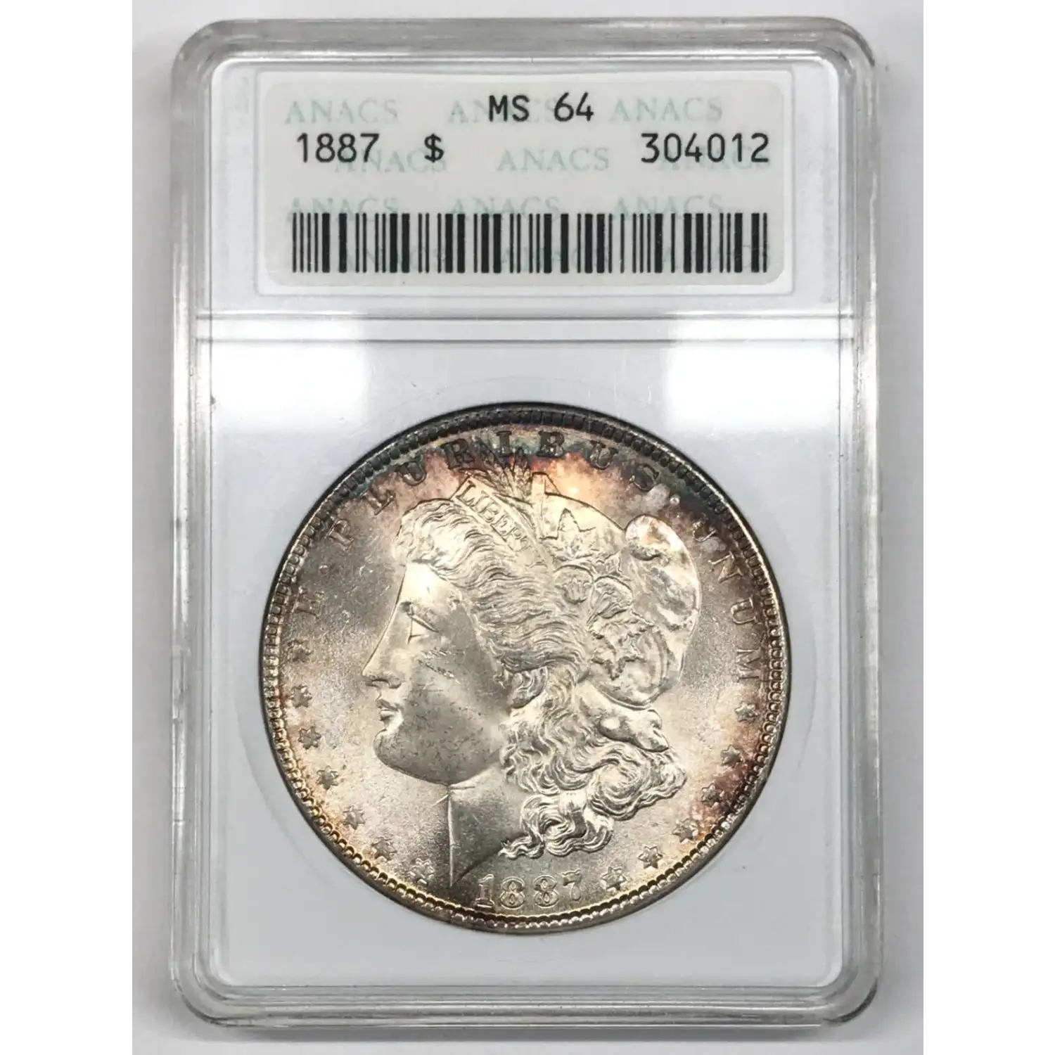 1887 P Morgan Silver Dollar ANACS MS-64 - old white soapbox holder