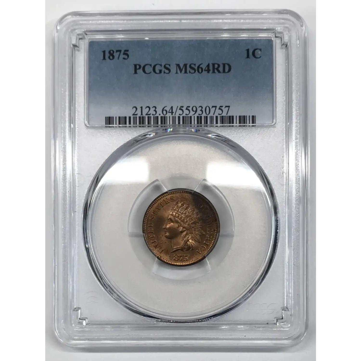 1875 P Indian Head Cent PCGS MS-64 RD - FS-303, Snow S-3 Repunched Date (RPD) - note that the variety is not designated on the label