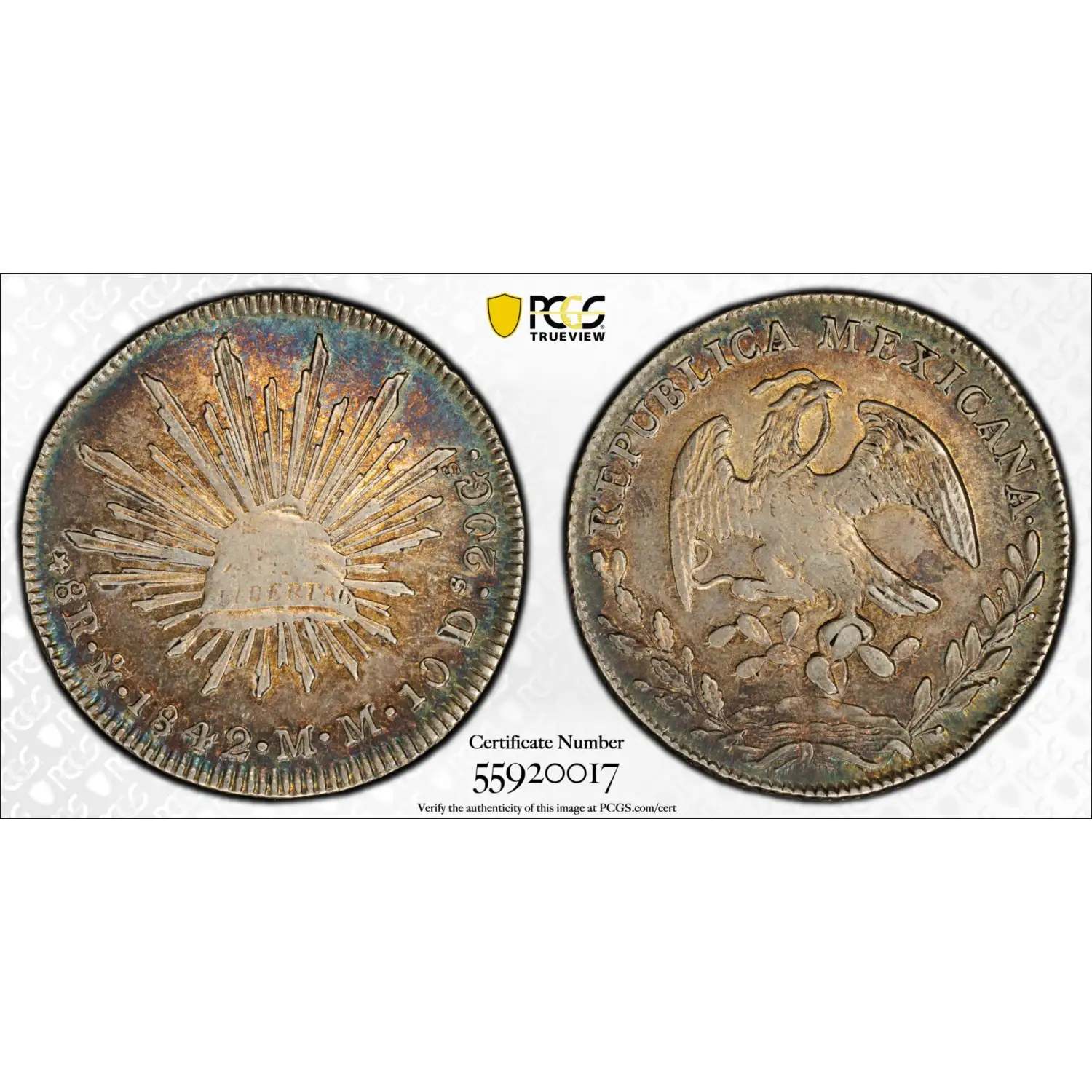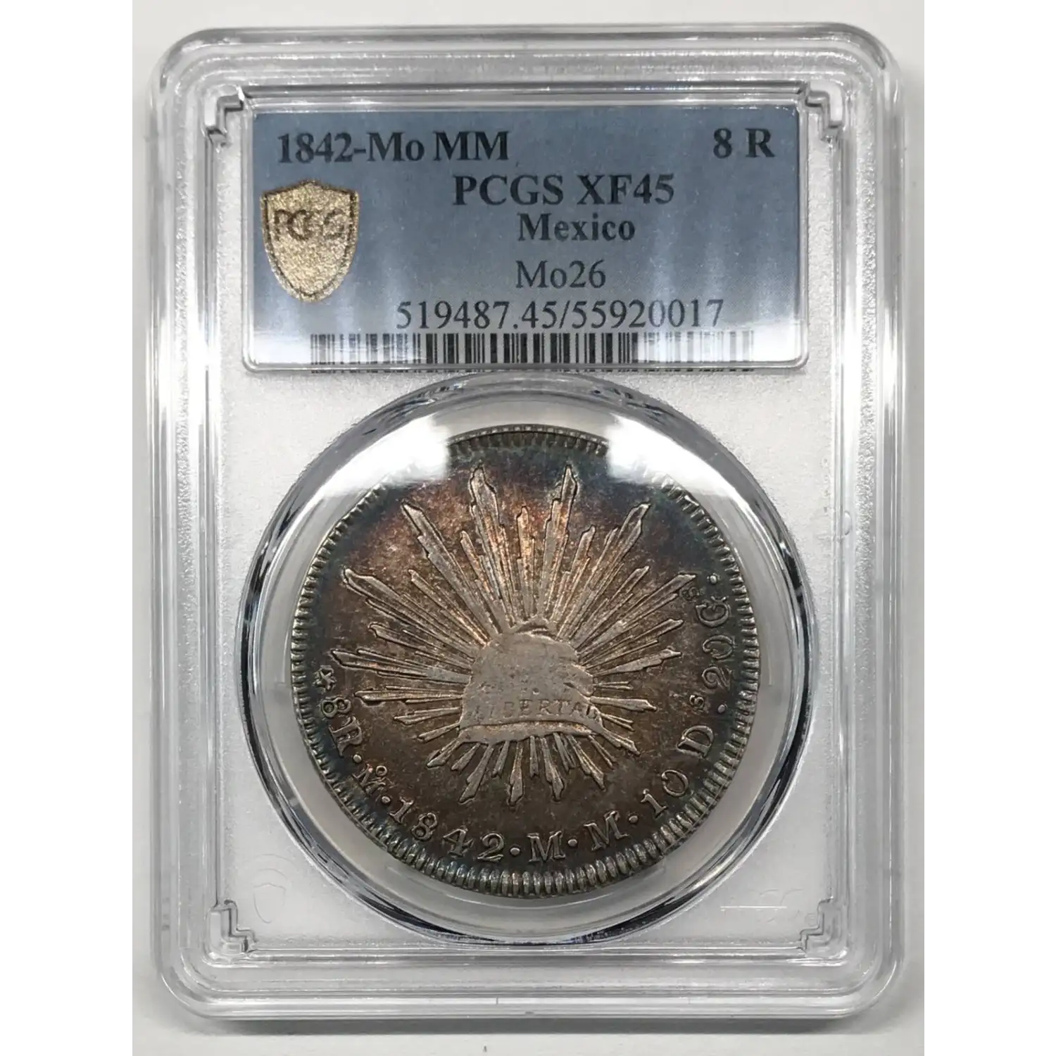 1841-Mo MM Mexico Silver 8 Reales PCGS XF-45 - *Rainbow Toning* - Mo26, KM-377.10
