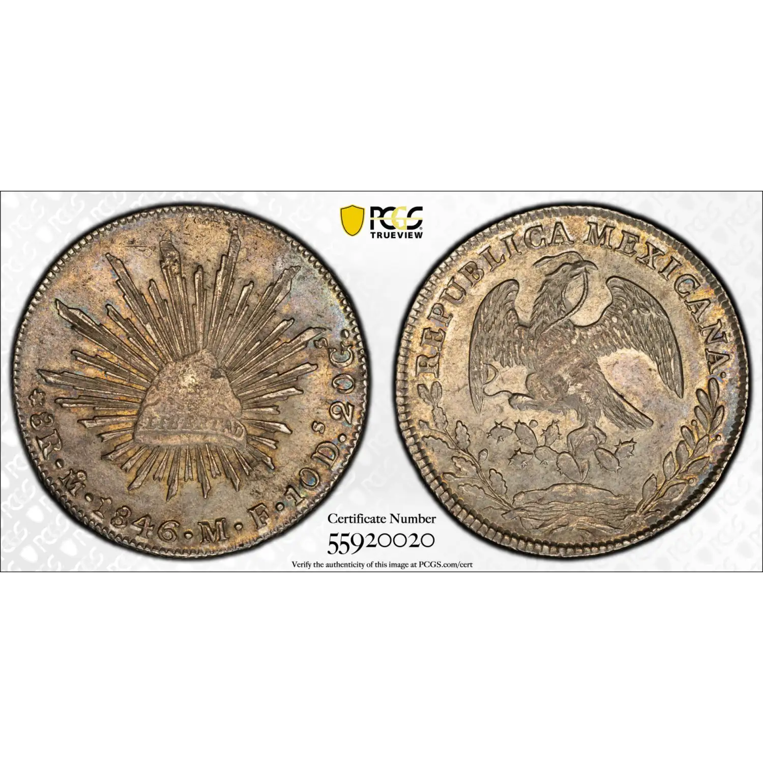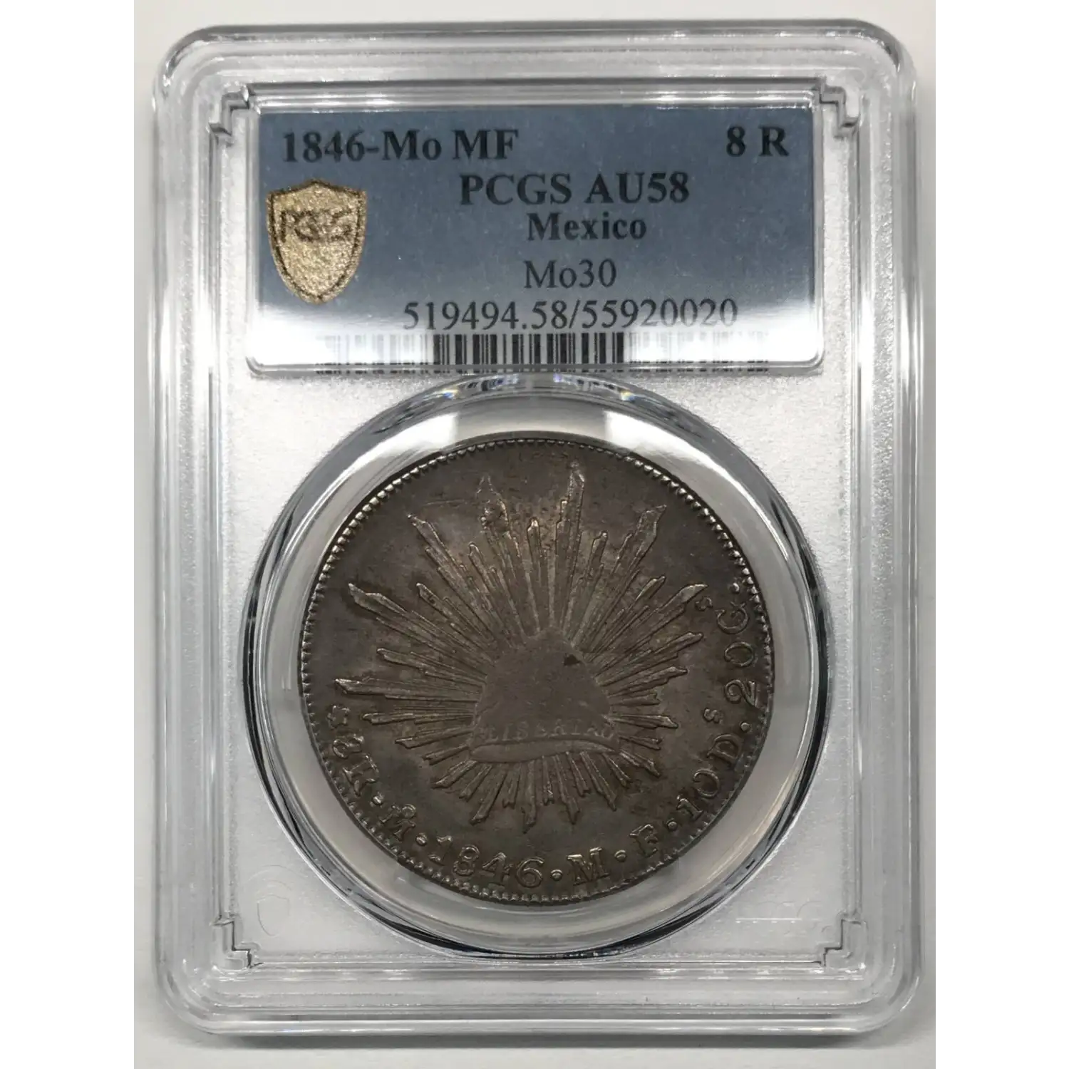 1846-Mo MF Mexico Silver 8 REALES PCGS AU-58 Mo30
