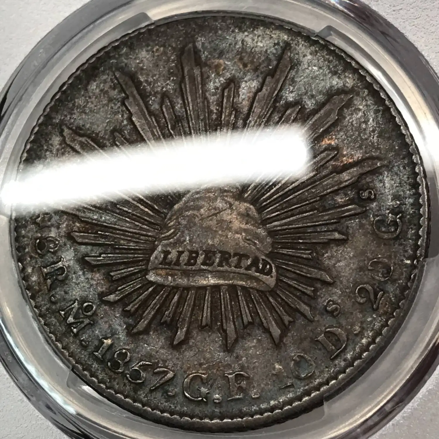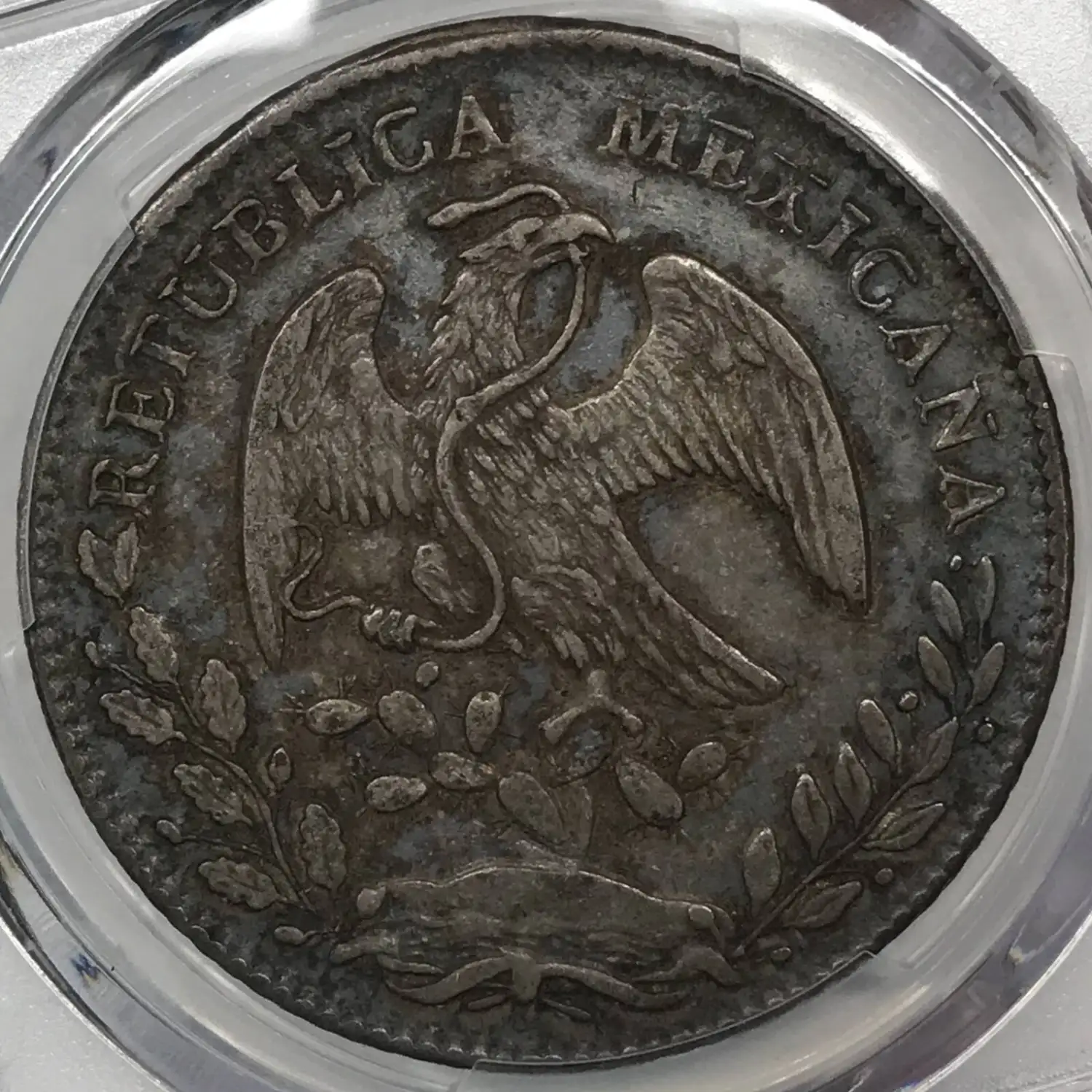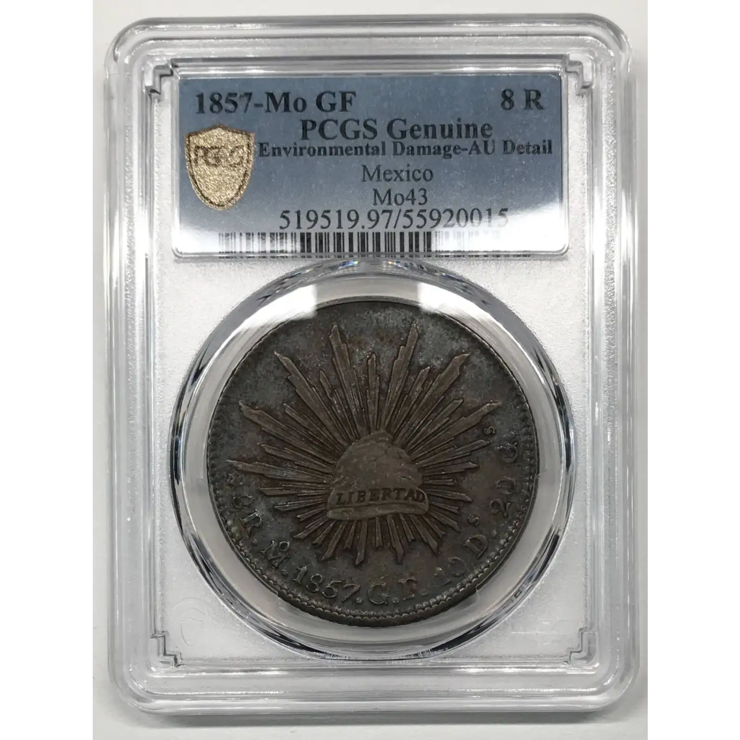 1857-Mo GF Mexico Silver 8 REALES PCGS Genuine - AU Details (97 - Environmental Damage) Mo43