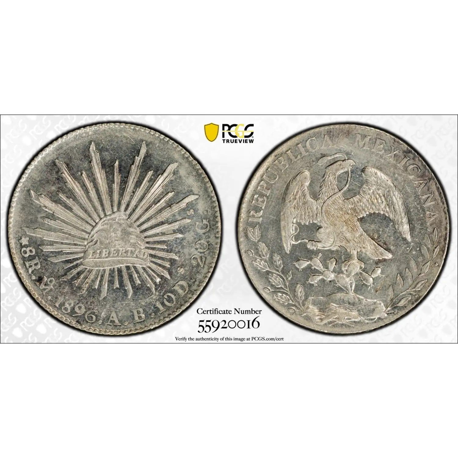 1896-Mo AB Mexico Silver 8 Reales PCGS UNC Details (cleaned) - Mo83, KM-377.10