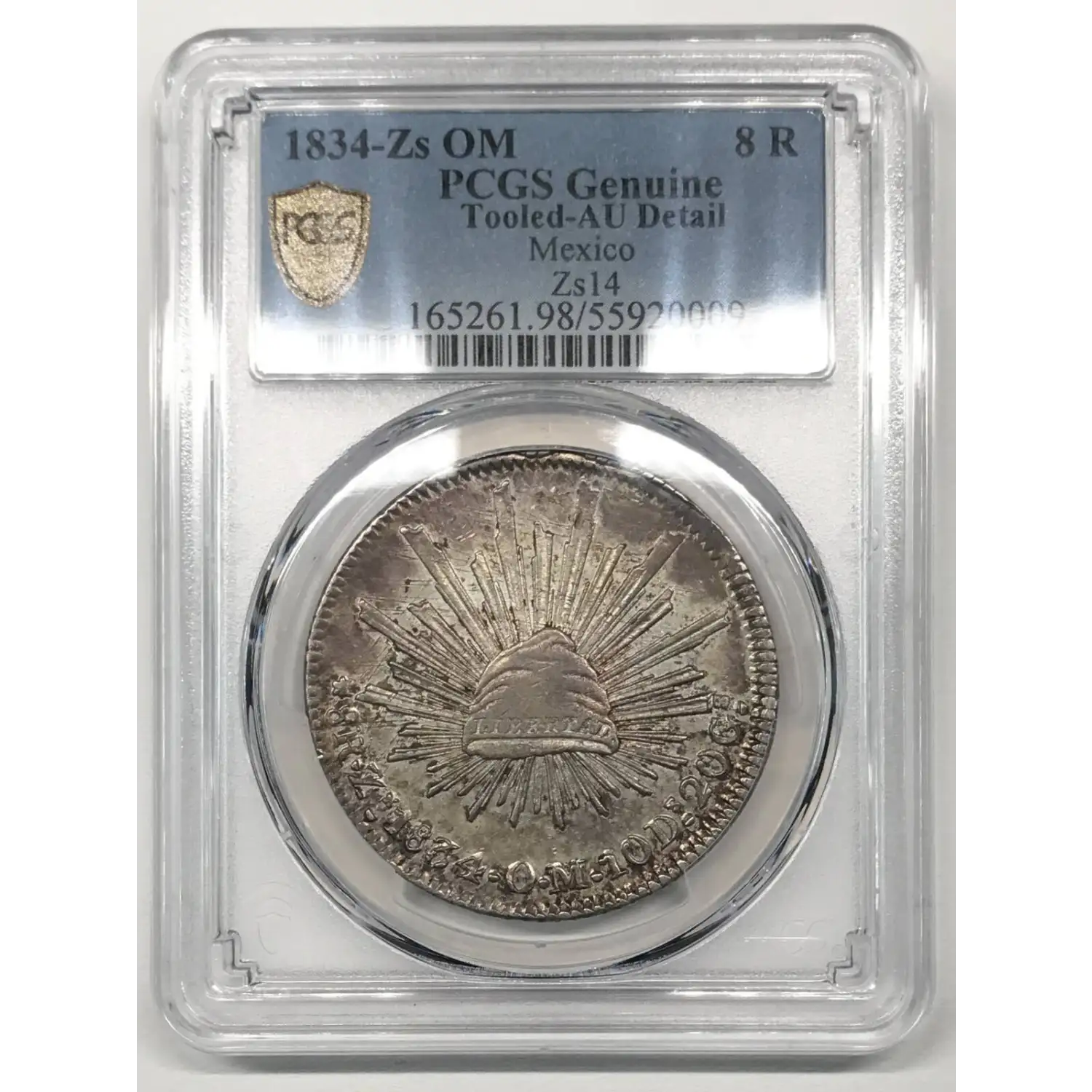 1834-s OM Mexico Silver 8 REALES PCGS Genuine - AU Details (98 - Damage) Zs14
