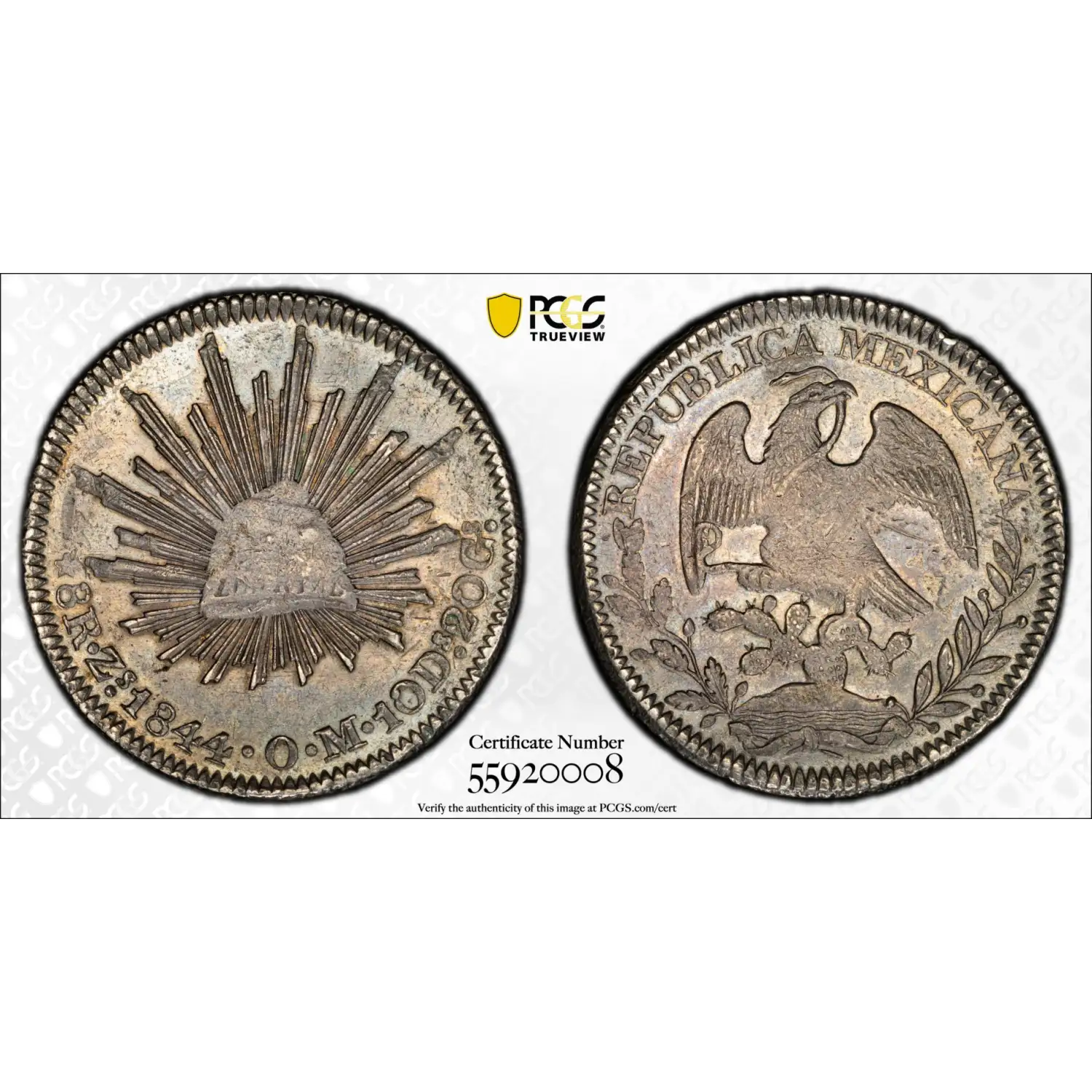 1844-Zs OM Mexico Silver 8 REALES PCGS AU-50 Zs24