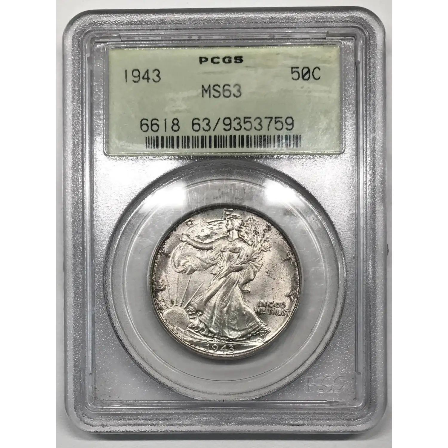 1943 P Walking Liberty Half Dollar PCGS MS-63 - Gen 3.0 Old Green Holder (OGH)