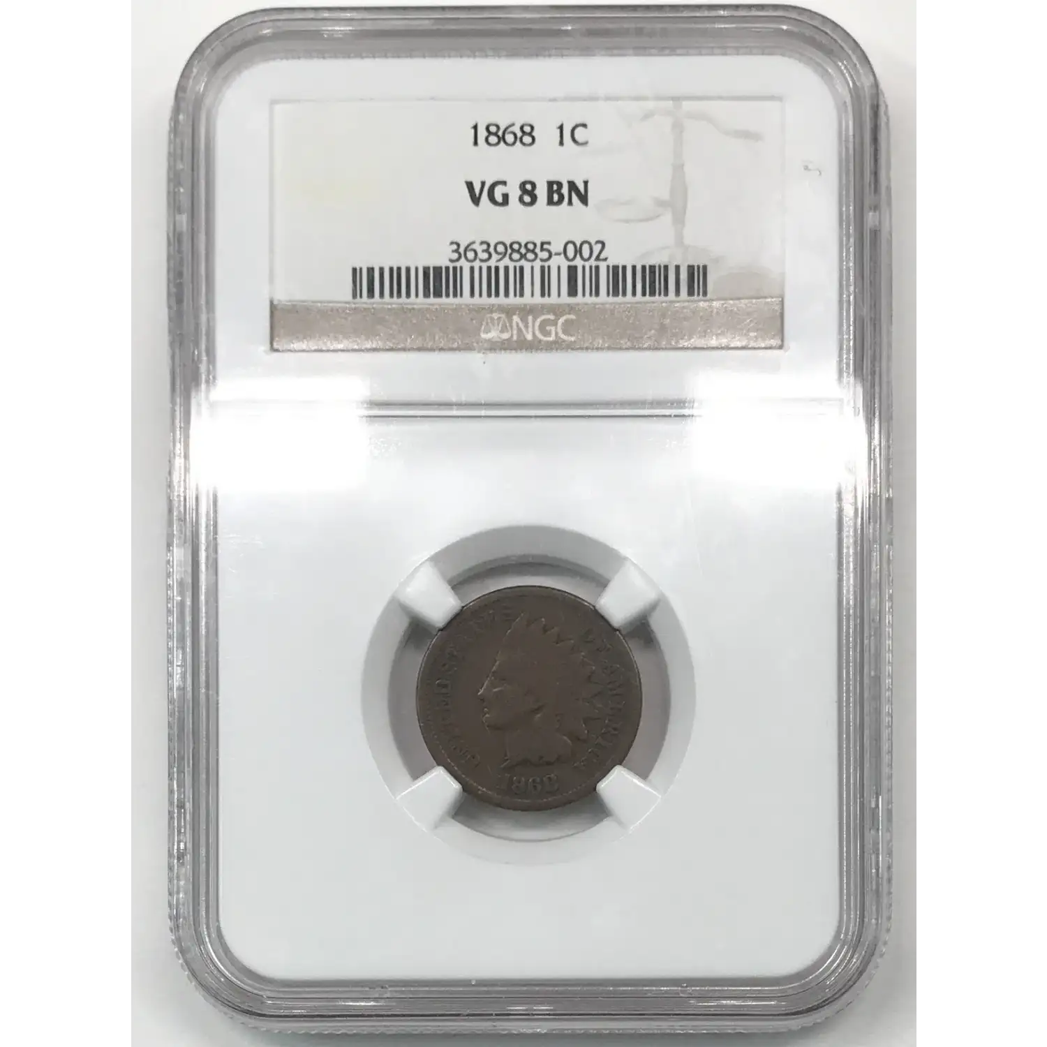 1868 P Indian Head Cent NGC VG-08 / VERY GOOD 8 BN