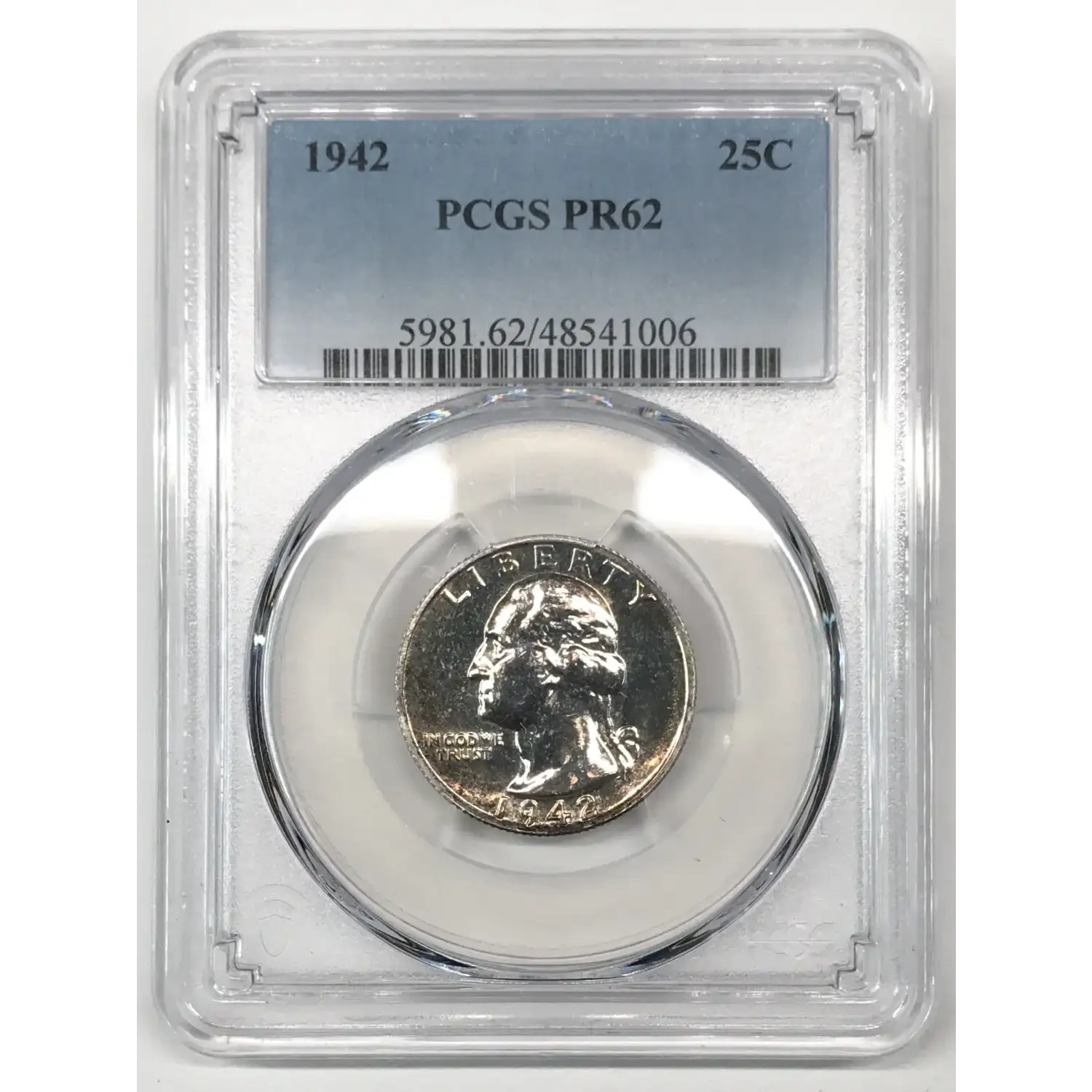 1942 Proof Silver Washington Quarter PCGS PR-62