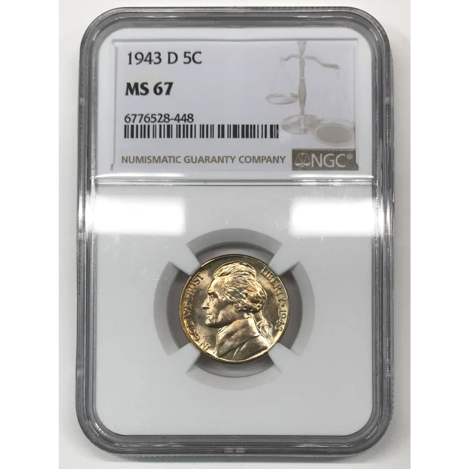 1943-D Silver Jefferson War Nickel NGC MS-67 - nice coin