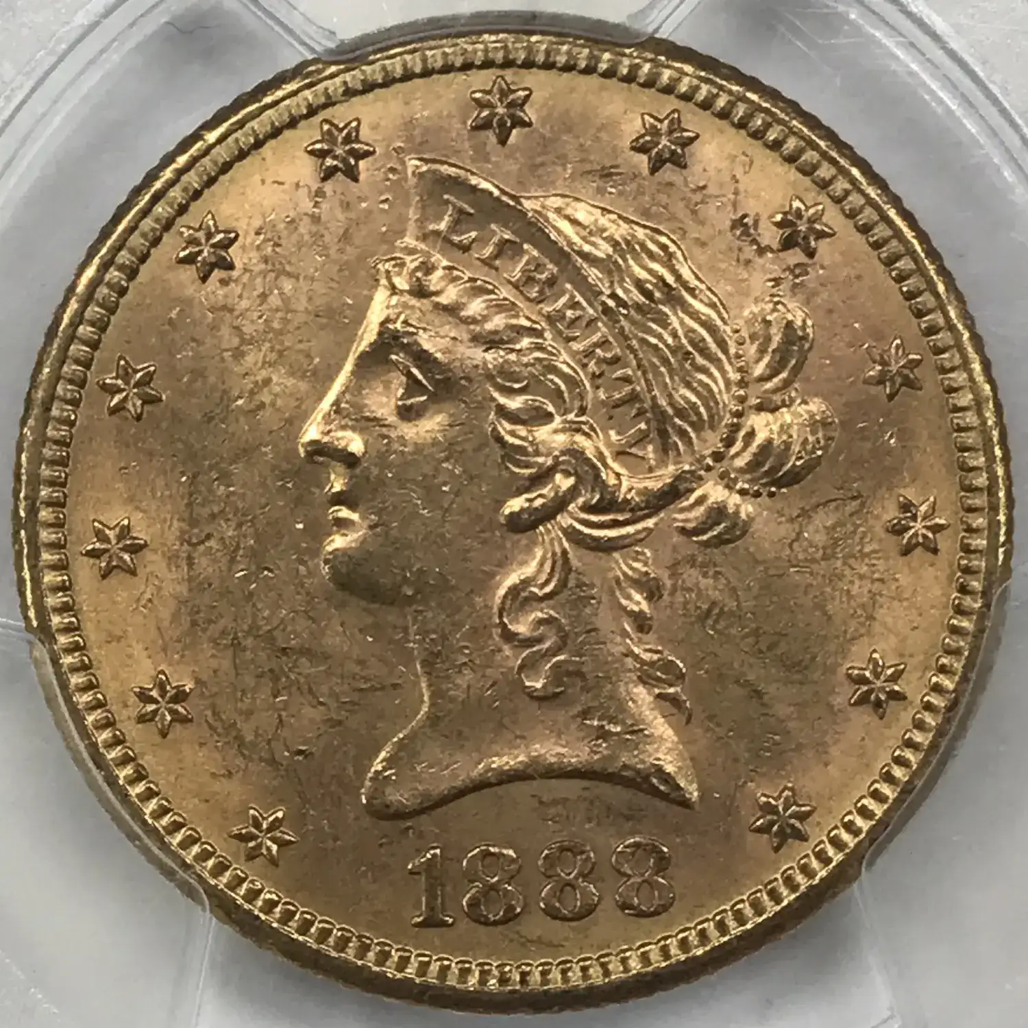 1888 S $10 Gold Liberty Head Eagle PCGS MS-63 - deep scratch on back side of slab