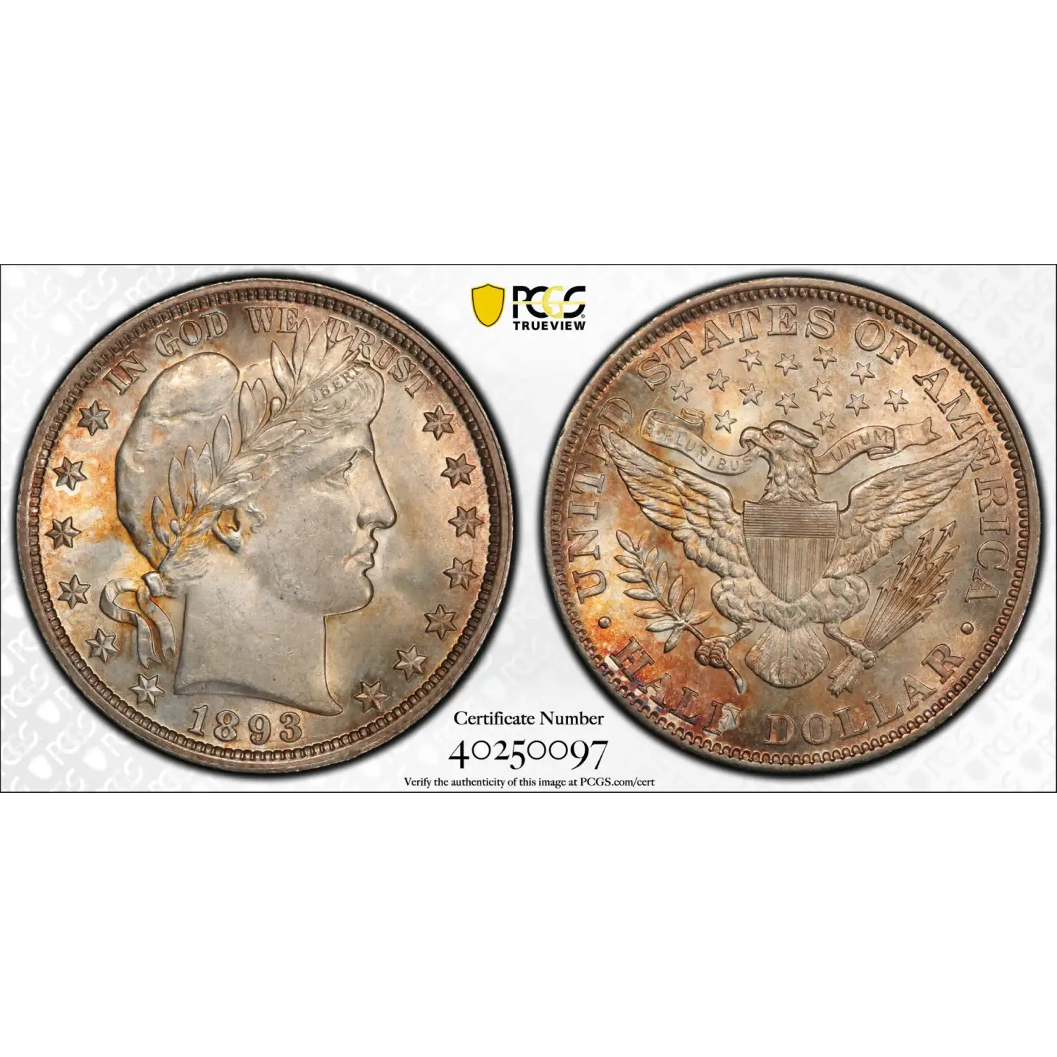 1893 Barber Half Dollar PCGS MS-64+