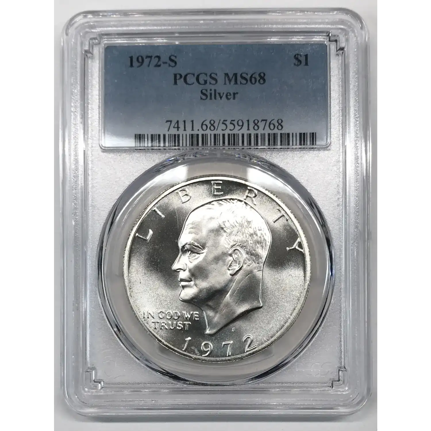 1972 S Silver Ike Eisenhower Dollar PCGS MS-68 - flashy bright white coin