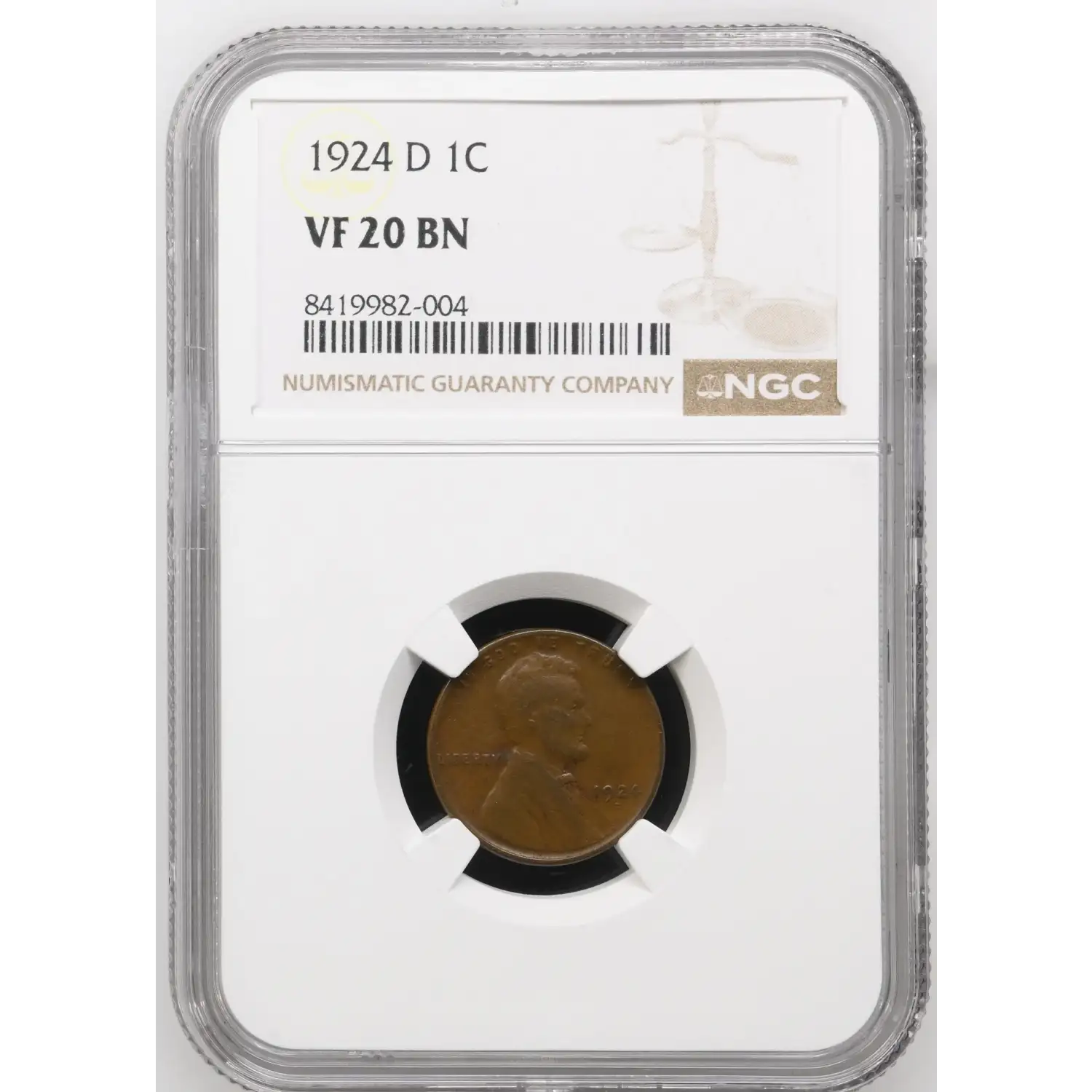 1924 D Lincoln Wheat Cent NGC VF-20 BN