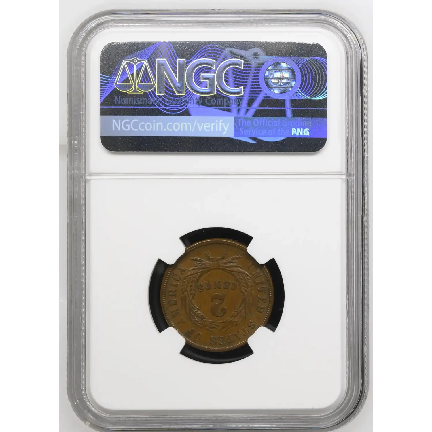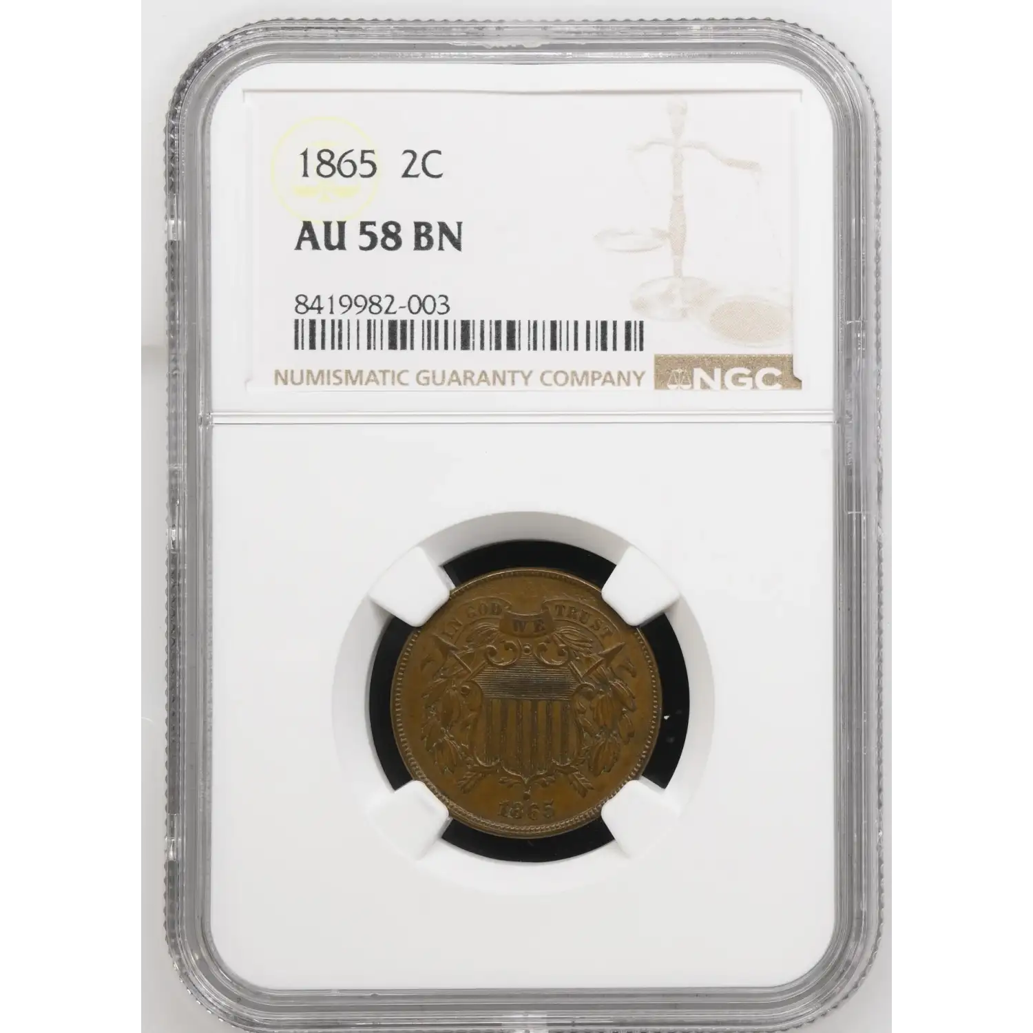 1865 P Two-Cent Piece (2c) NGC AU-58 BN
