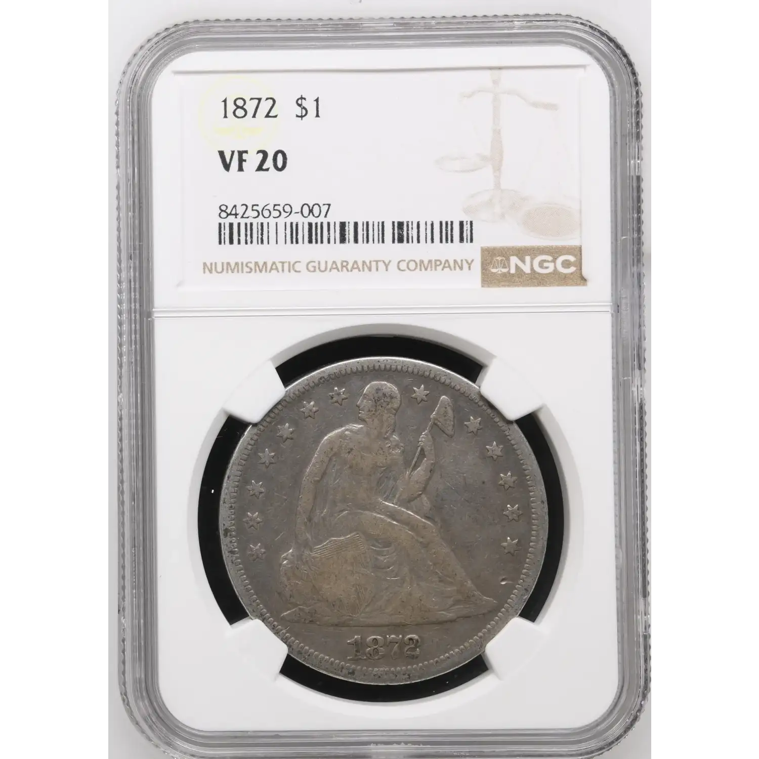 1872 Seated Liberty Silver Dollar NGC VF-20