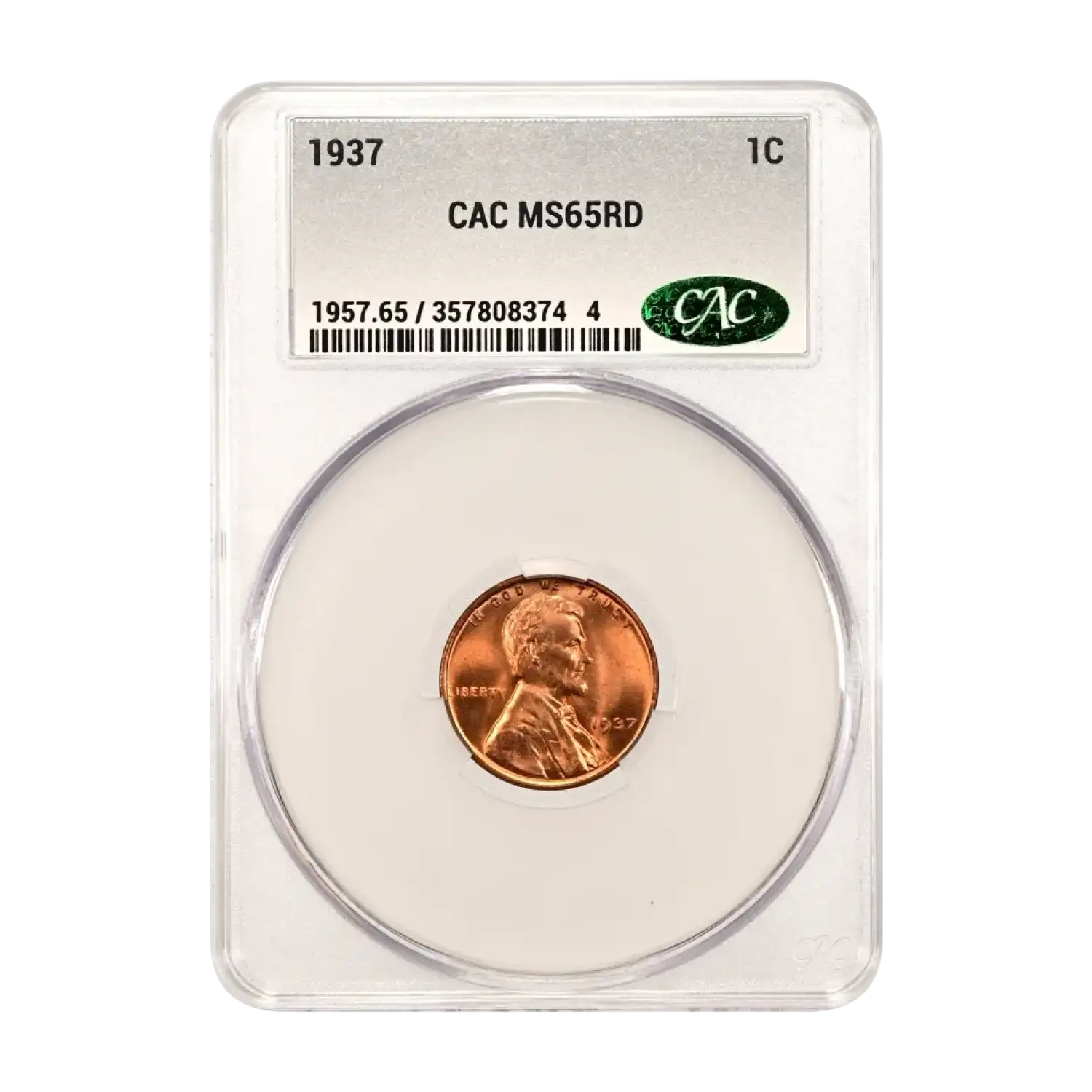 1937 P Lincoln Wheat Cent CAC Grading (CACG) MS 65 RD